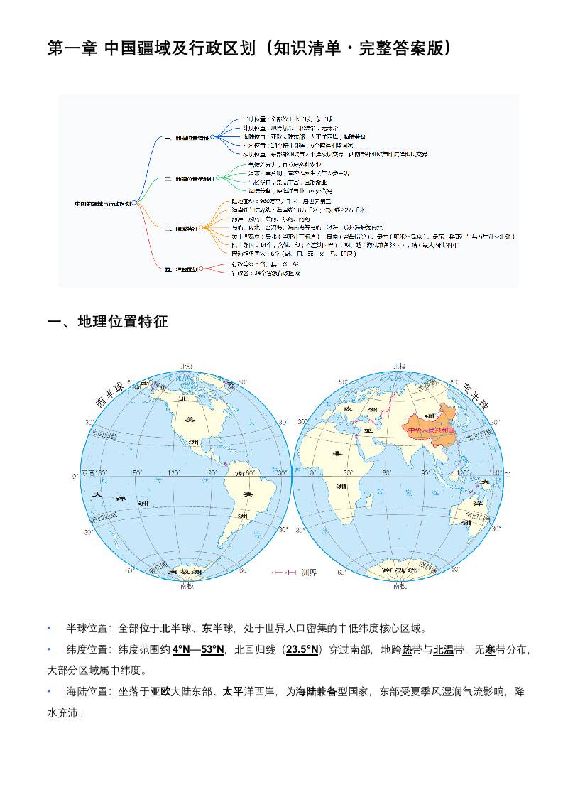第一章中国疆域及行政区划(知识清单)(完整答案版)