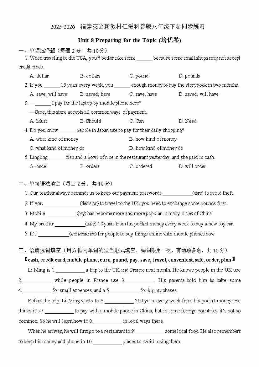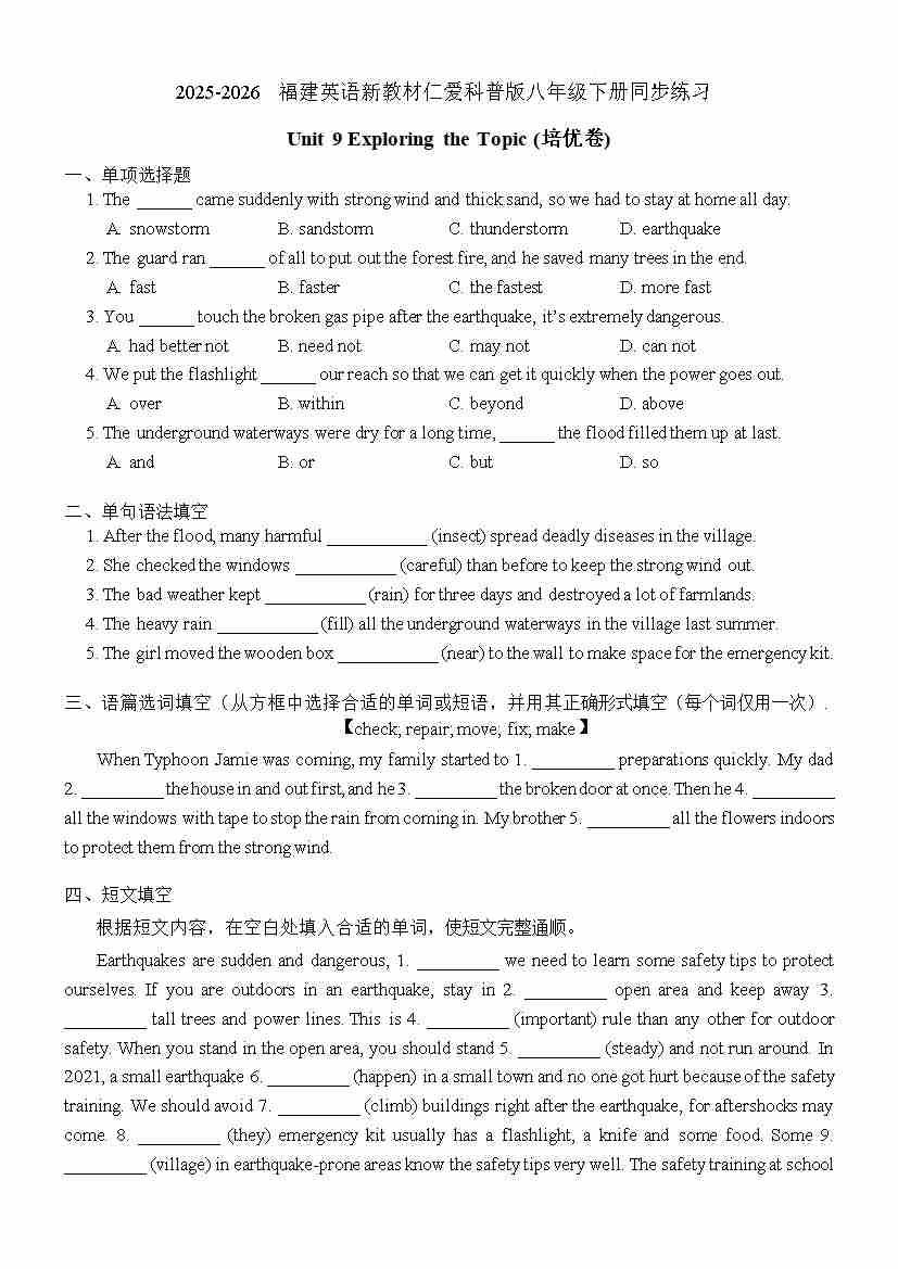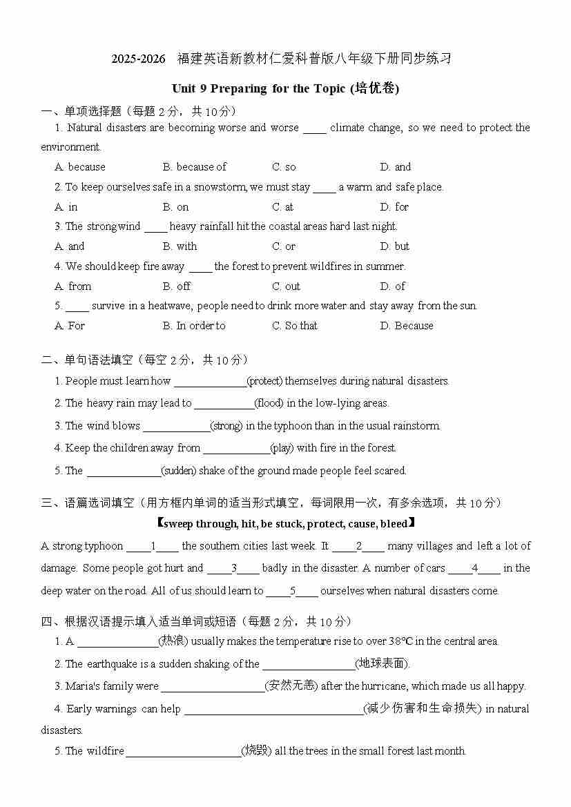 Unit 9 preparing for the topic 同步练 (培优卷)2025-2026学年仁爱科普版八年级英语下册