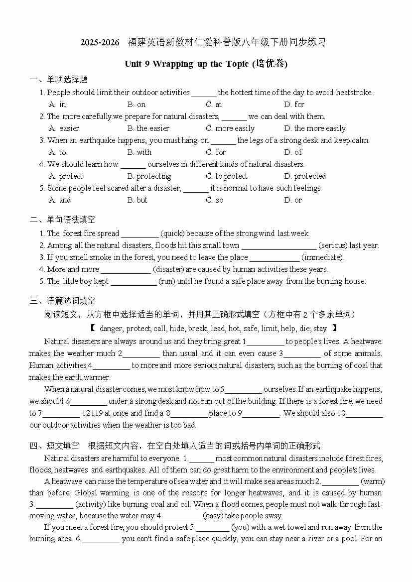 Unit 9 Wrapping up the topic 同步练习(培优卷) 2025-2026学年仁爱科普版英语八年级下册