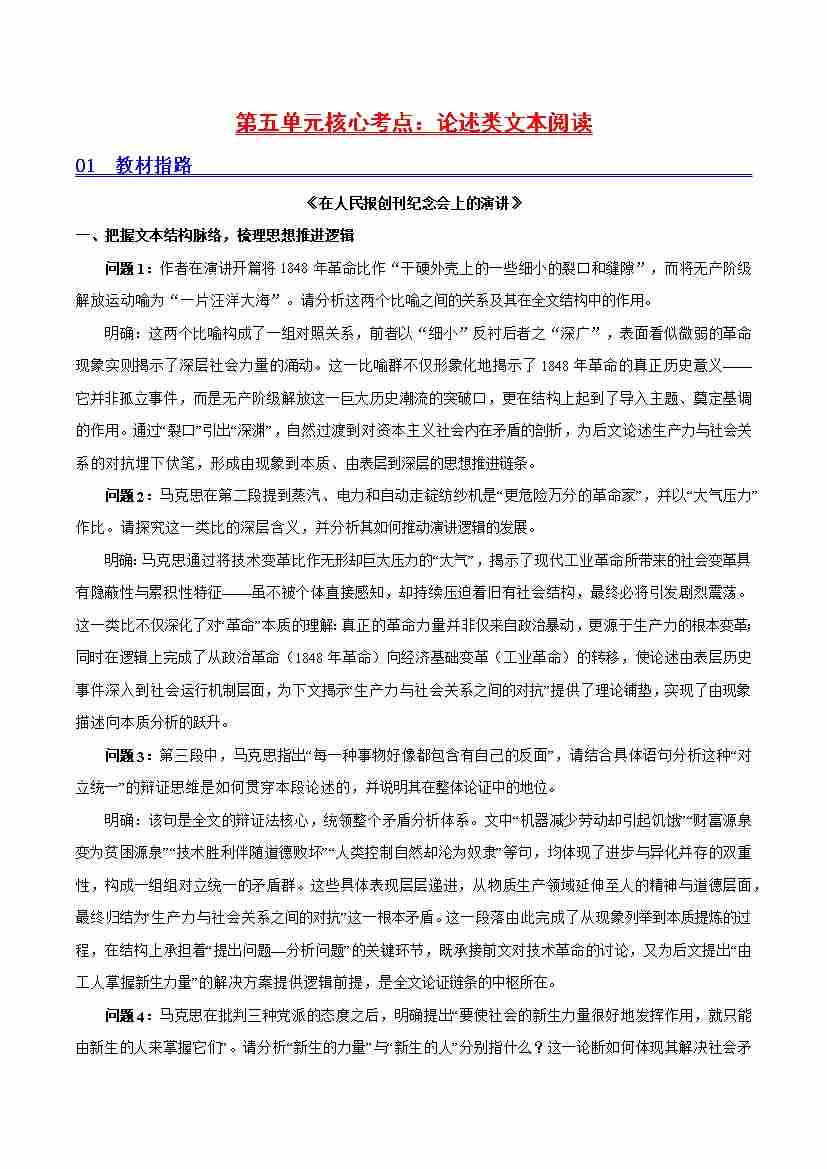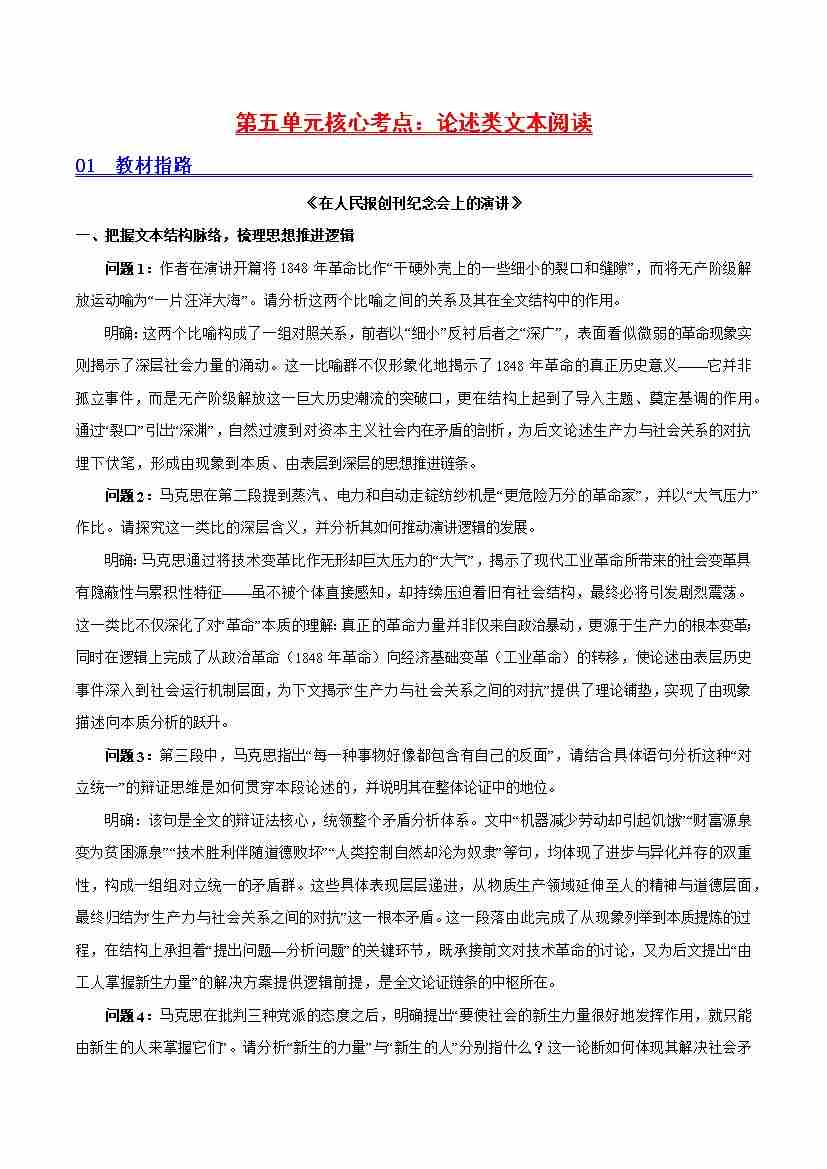 高一语文必修下册第五单元测试·提升卷(考试版A4)