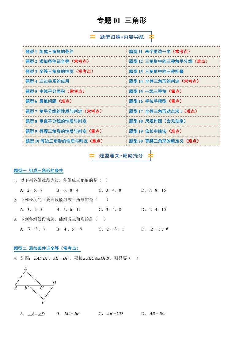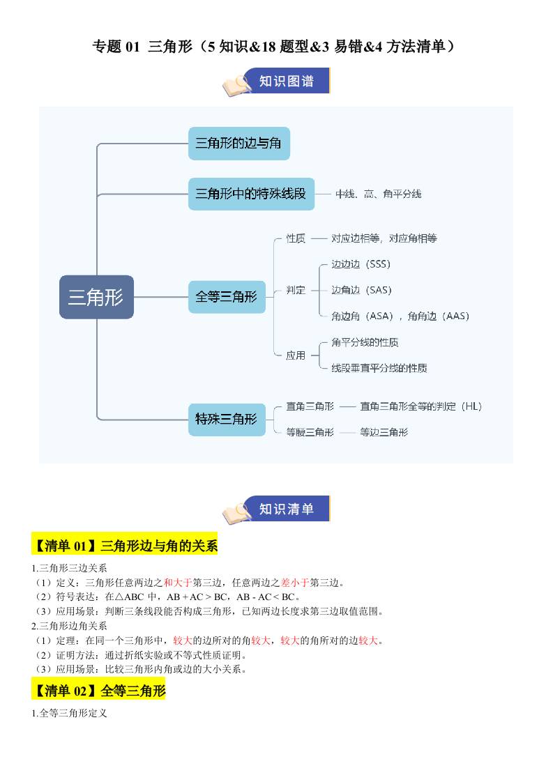 【八上苏科数学】清单01 三角形(期中知识清单,5知识&18题型&3易错&4方法清单)(原卷版)八年级数学上学期新教材苏科版
