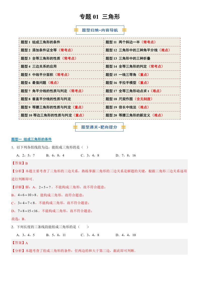 【八上苏科数学】清单01 三角形(期中知识清单,5知识&18题型&3易错&4方法清单)(解析版)八年级数学上学期新教材苏科版