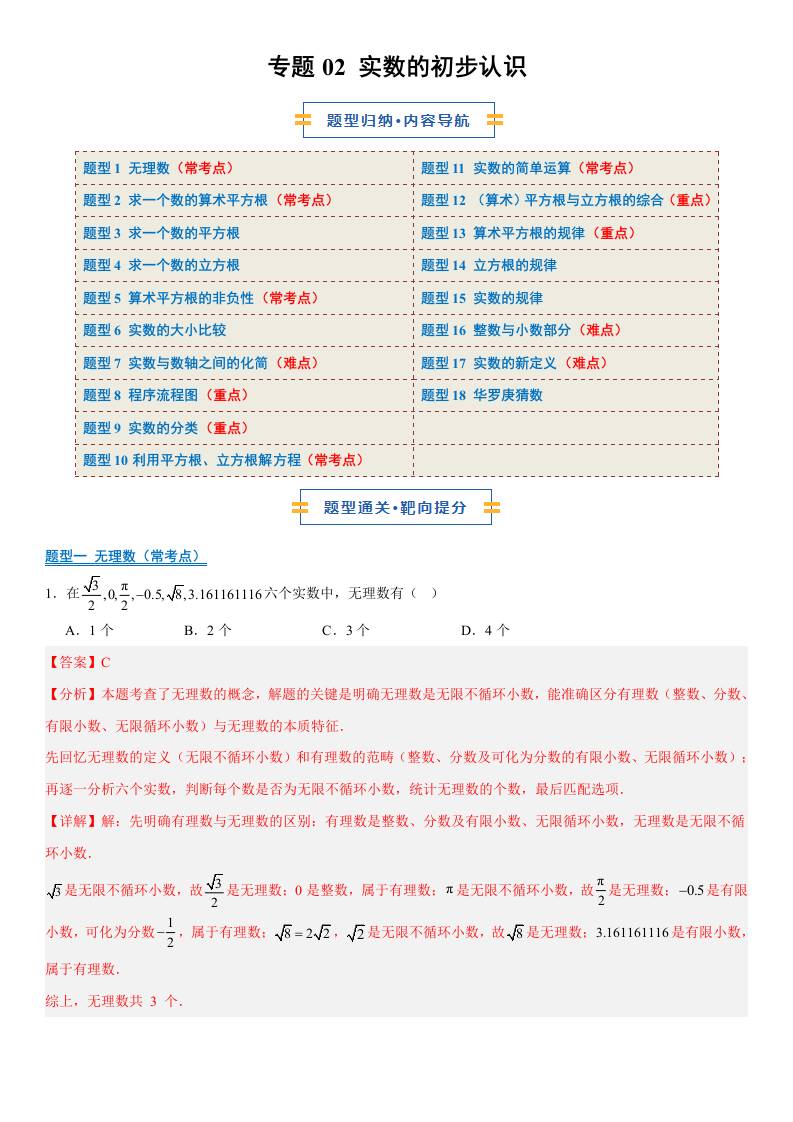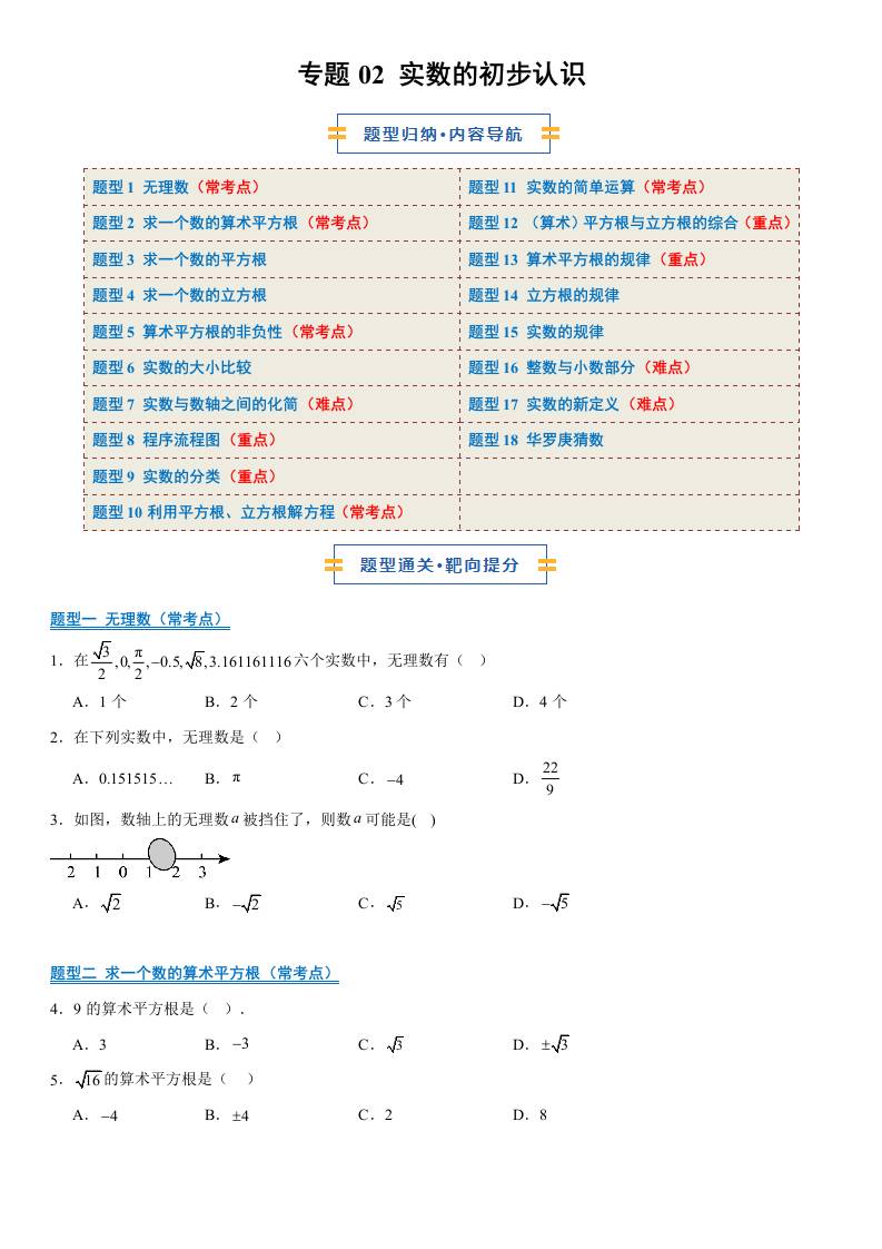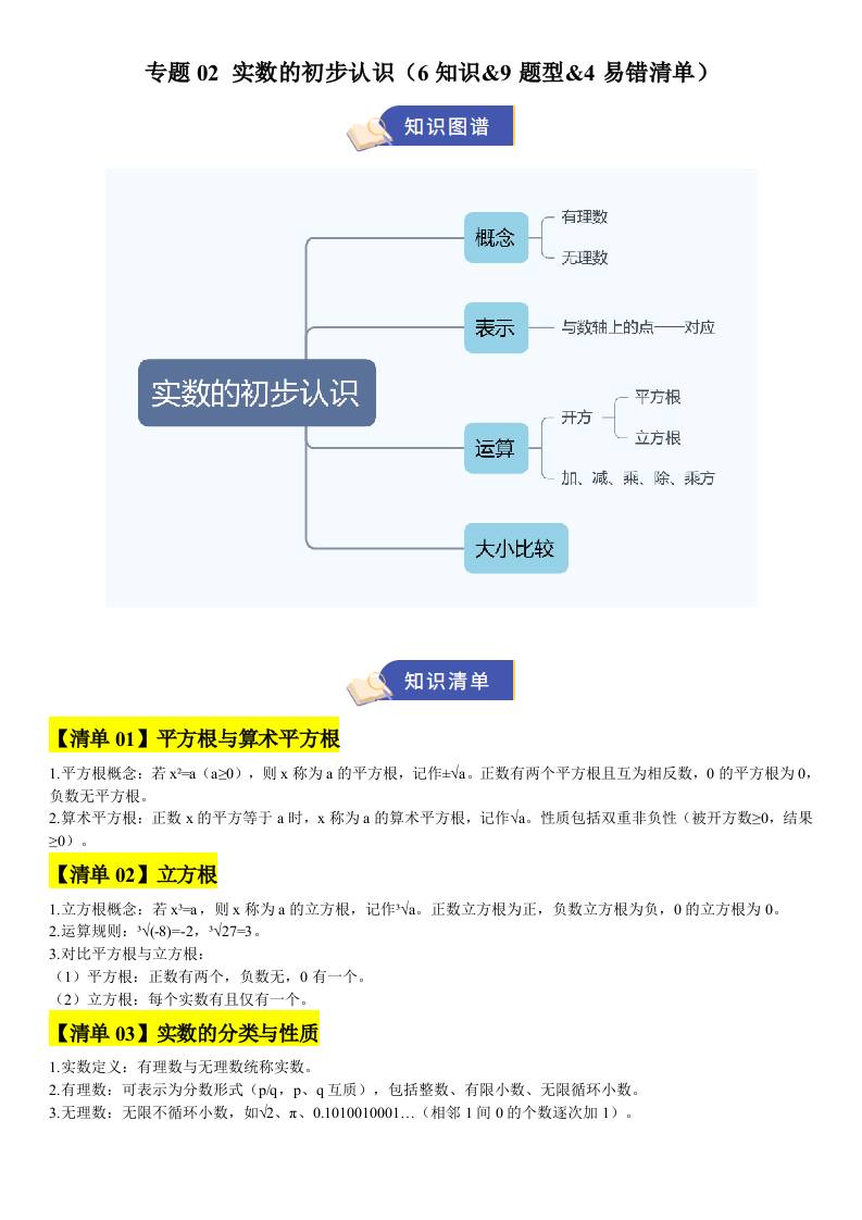 【八上苏科数学】清单02 实数的初步认识(期中知识清单,6知识&9题型&4易错清单)(原卷版)八年级数学上学期新教材苏科版