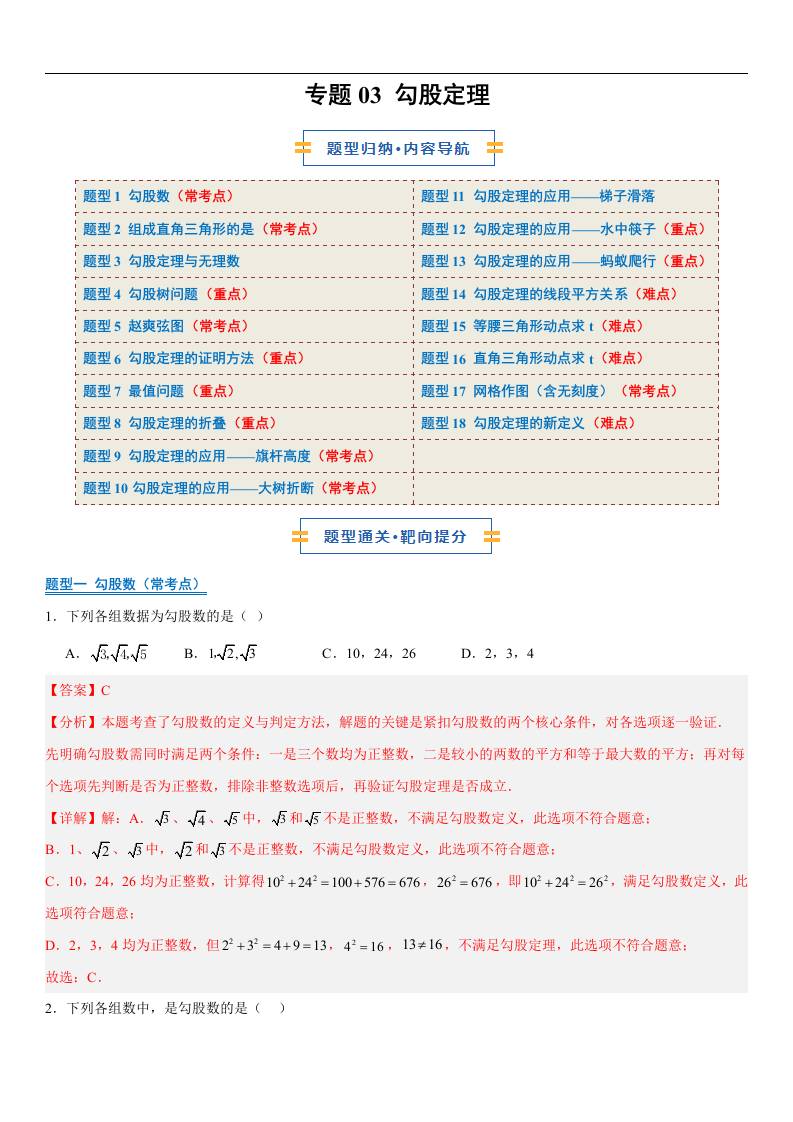【八上苏科数学】专题03 勾股定理(期中专项训练)(解析版)八年级数学上学期新教材苏科版