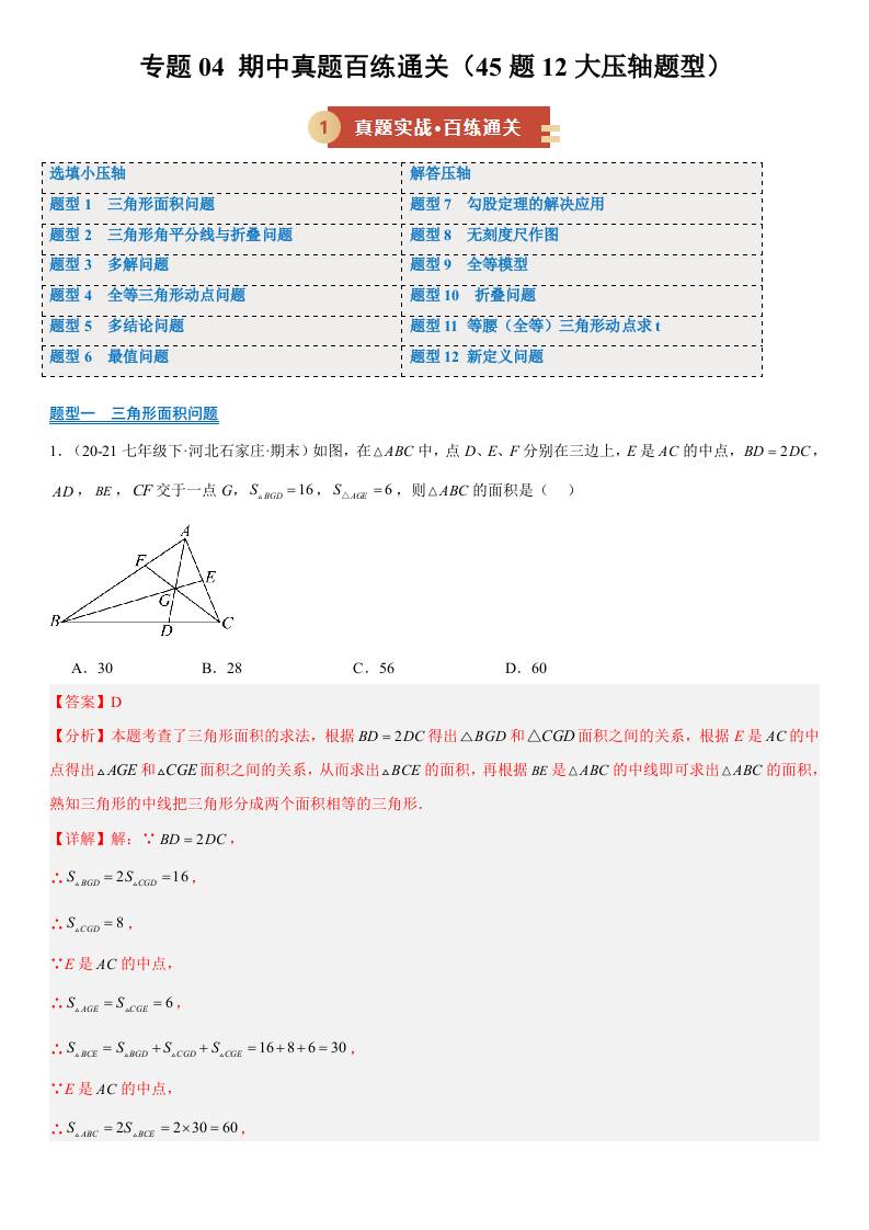 【八上苏科数学】专题04 期中真题百练通关 45题12大压轴题型(期中专项训练)(解析版)八年级数学上学期新教材苏科版