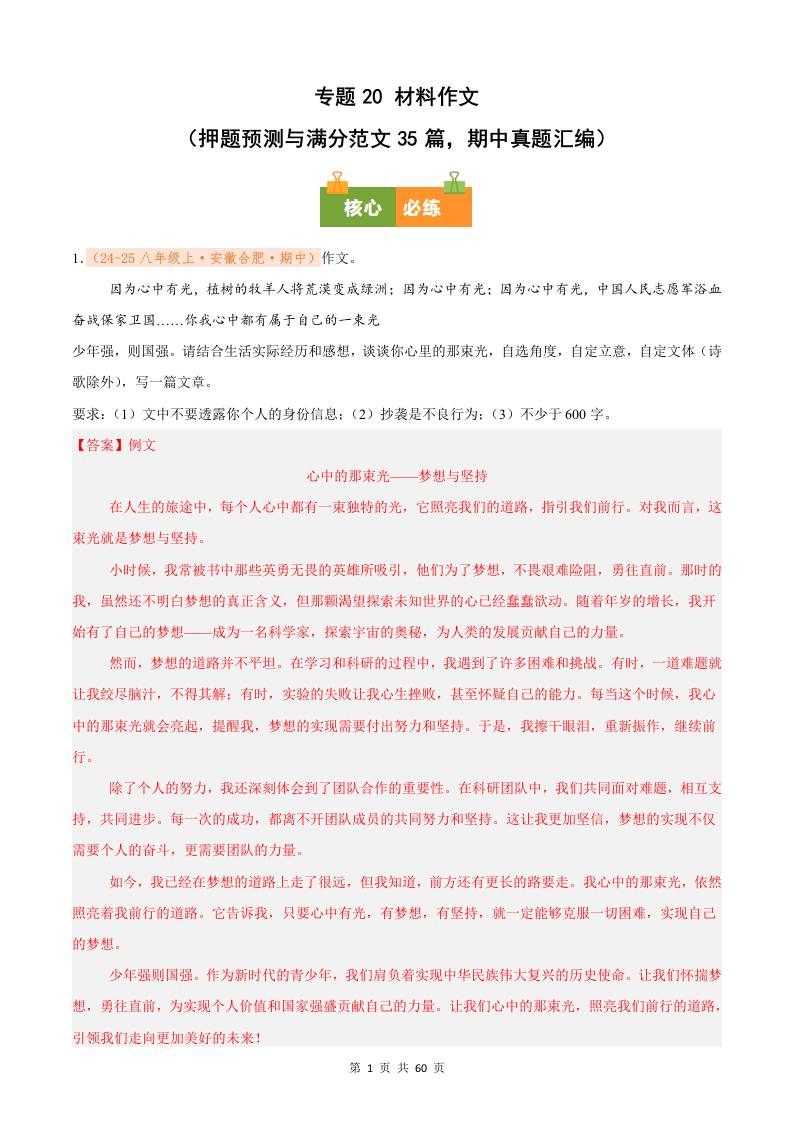 专题20 材料作文(押题预测与满分范文35篇,期中真题汇编)八年级语文上学期(解析版)