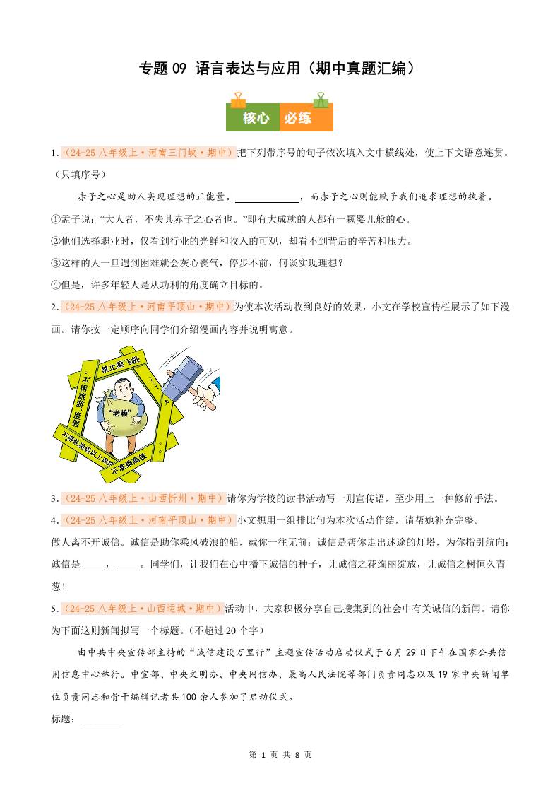 专题09 语言表达与应用(期中真题汇编)(原卷版)