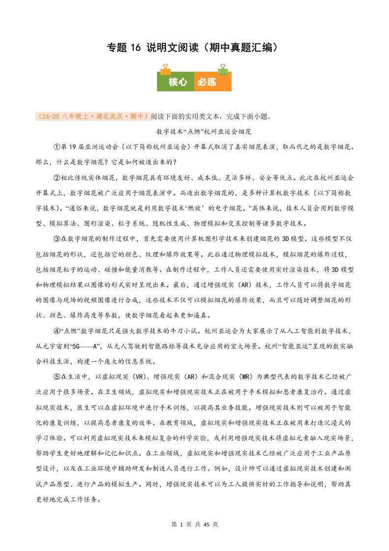 专题16 说明文阅读(期中真题汇编)八年级语文上学期(原卷版)
