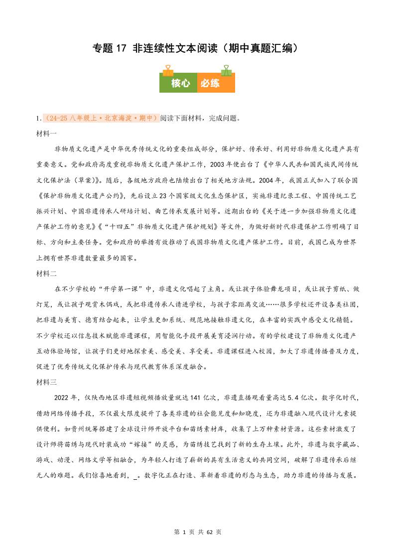专题17 非连续性文本阅读(期中真题汇编)八年级语文上学期(解析版)