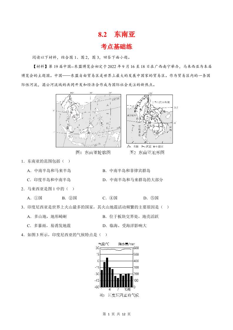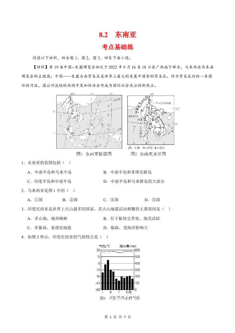 8.2东南亚(分层作业)(原卷版)