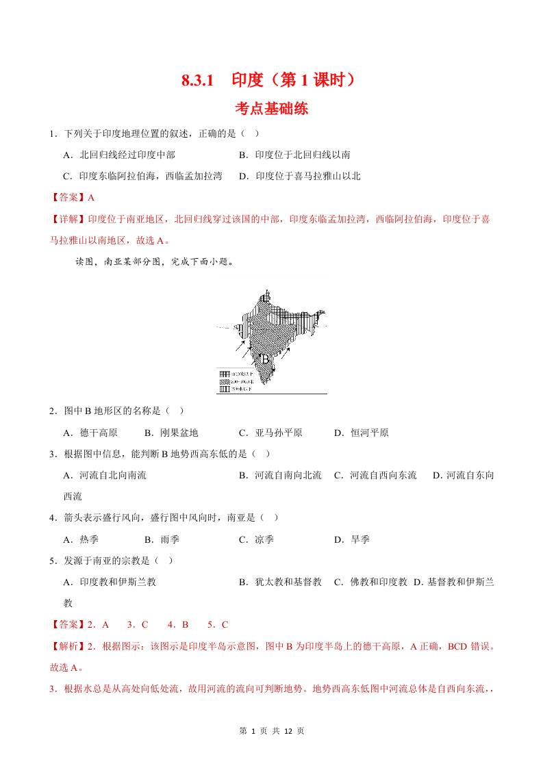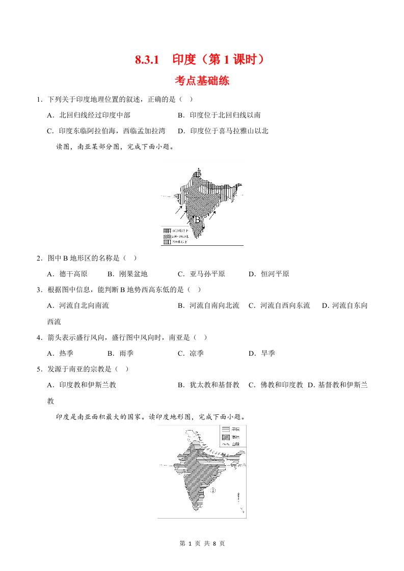 8.3.1印度第一课时(分层作业)(原卷版)