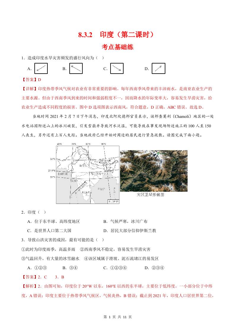 8.3.2印度第二课时(分层作业)(解析版)