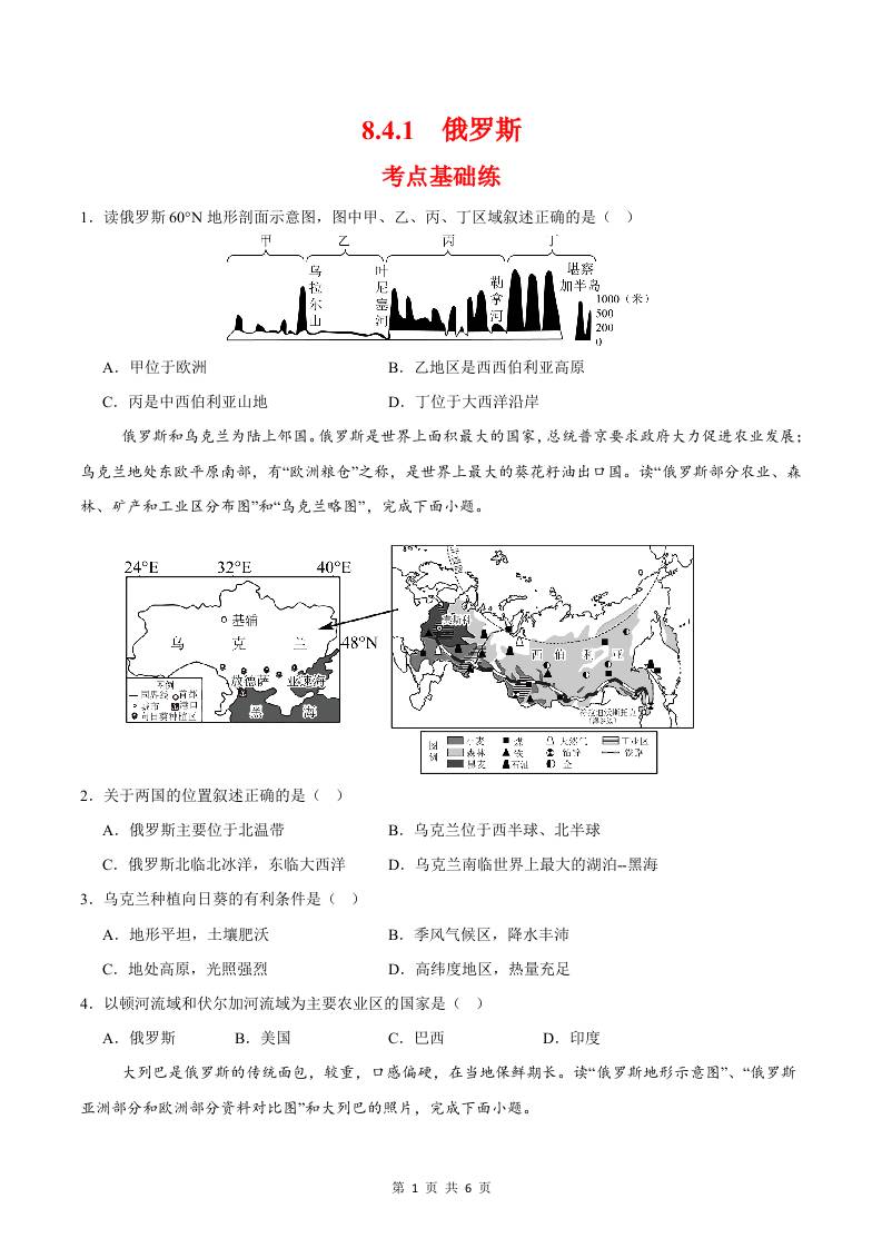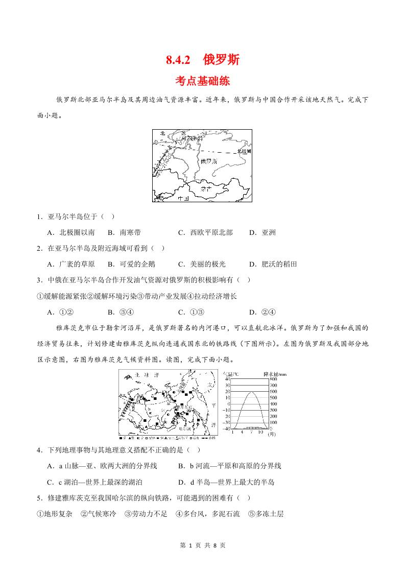 8.4.1俄罗斯第一课时(分层作业)(原卷版)