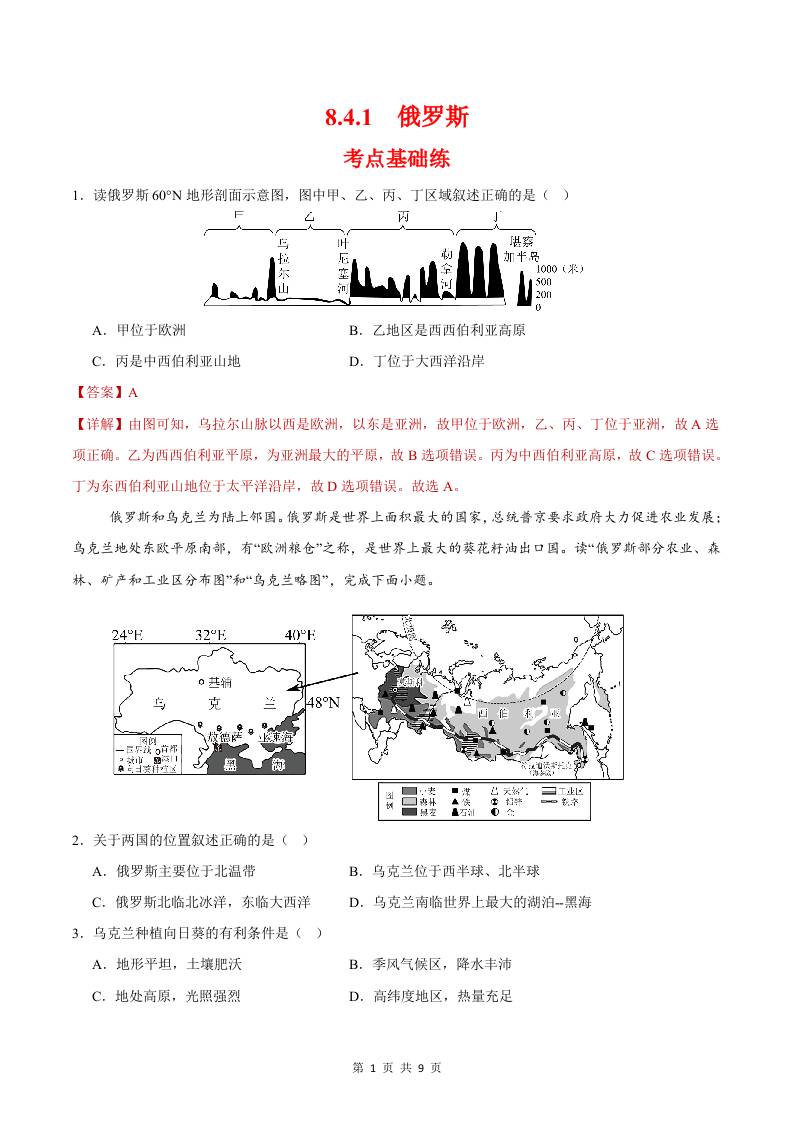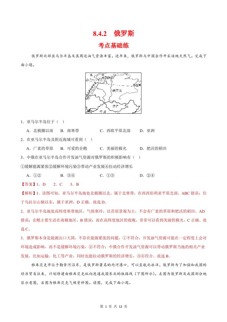 8.4.1俄罗斯第一课时(分层作业)(解析版)