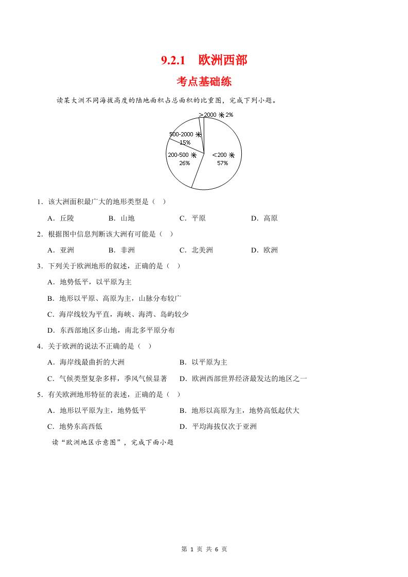 9.2.1欧洲西部第一课时(分层作业)(原卷版)