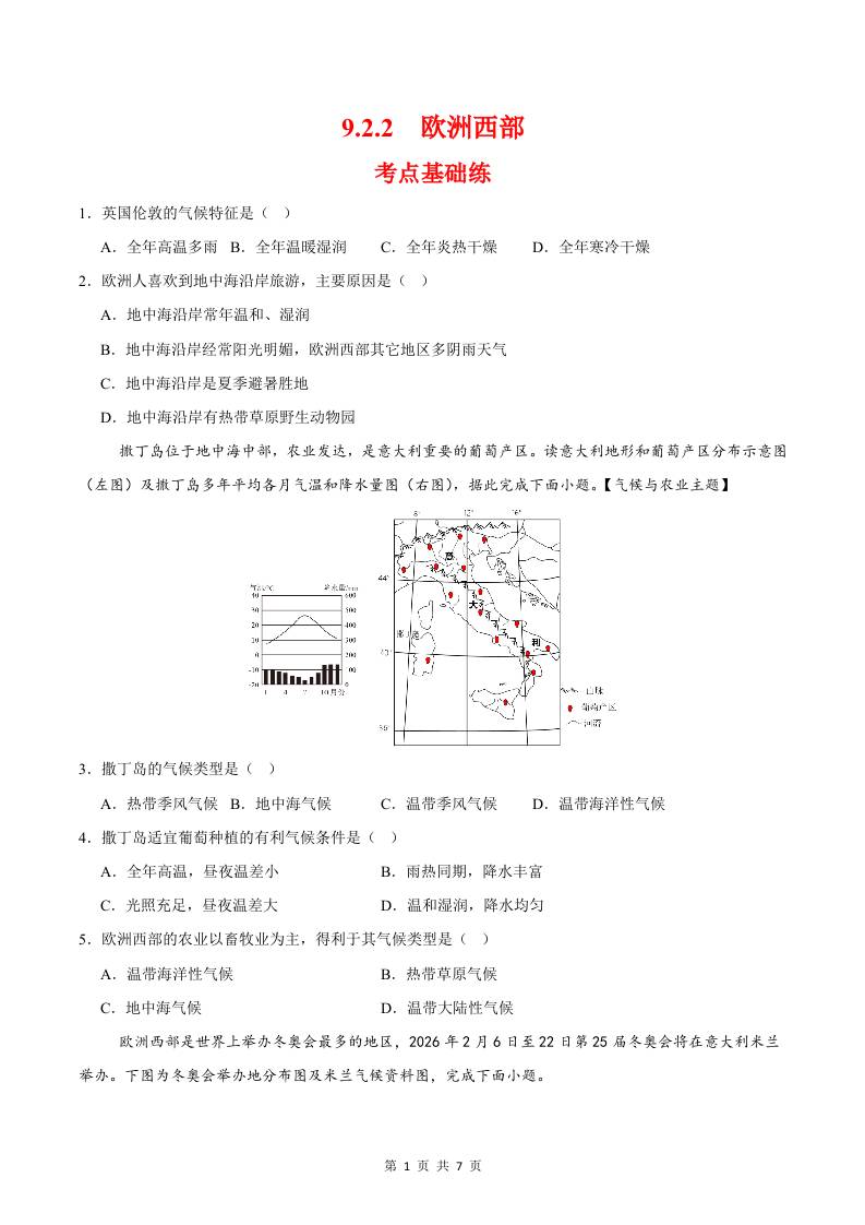 9.2.2欧洲西部第二课时(分层作业)(原卷版)