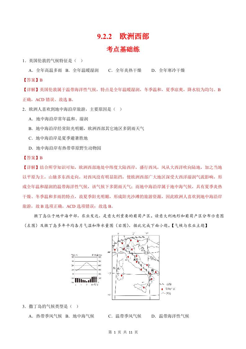 9.2.2欧洲西部第二课时(分层作业)(解析版)
