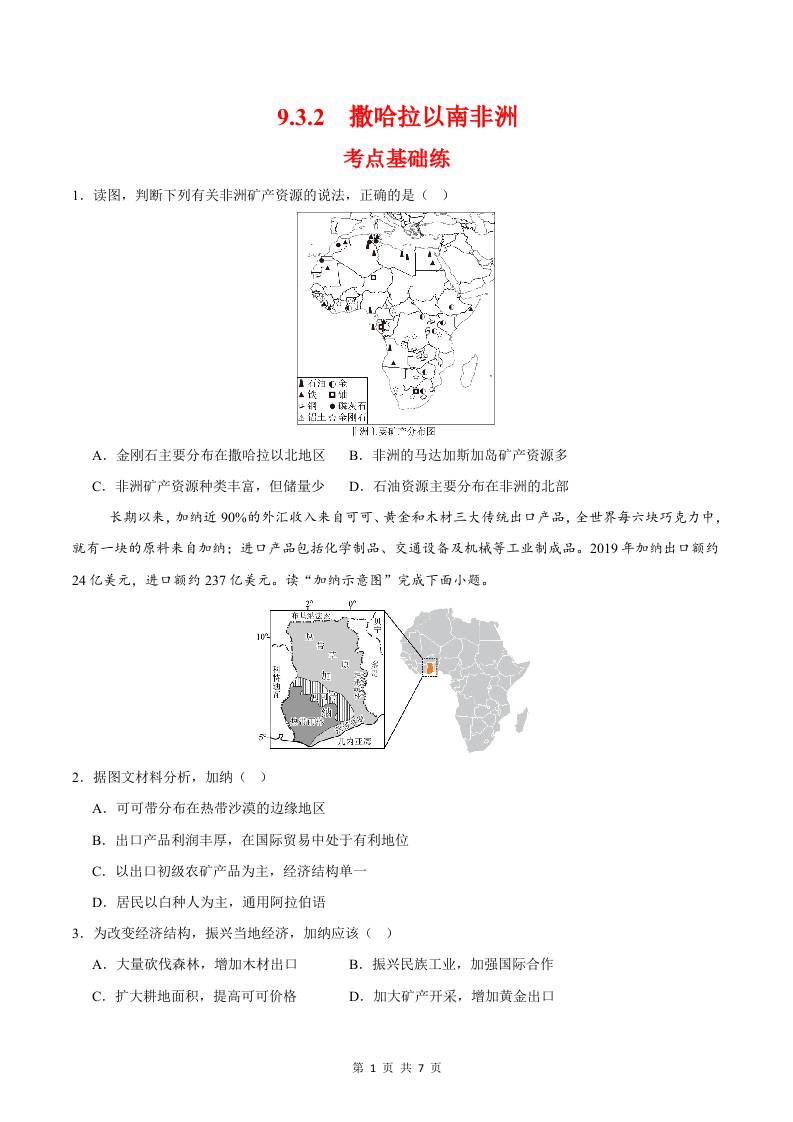 9.3.2撒哈拉以南非洲第二课时(分层作业)(原卷版)