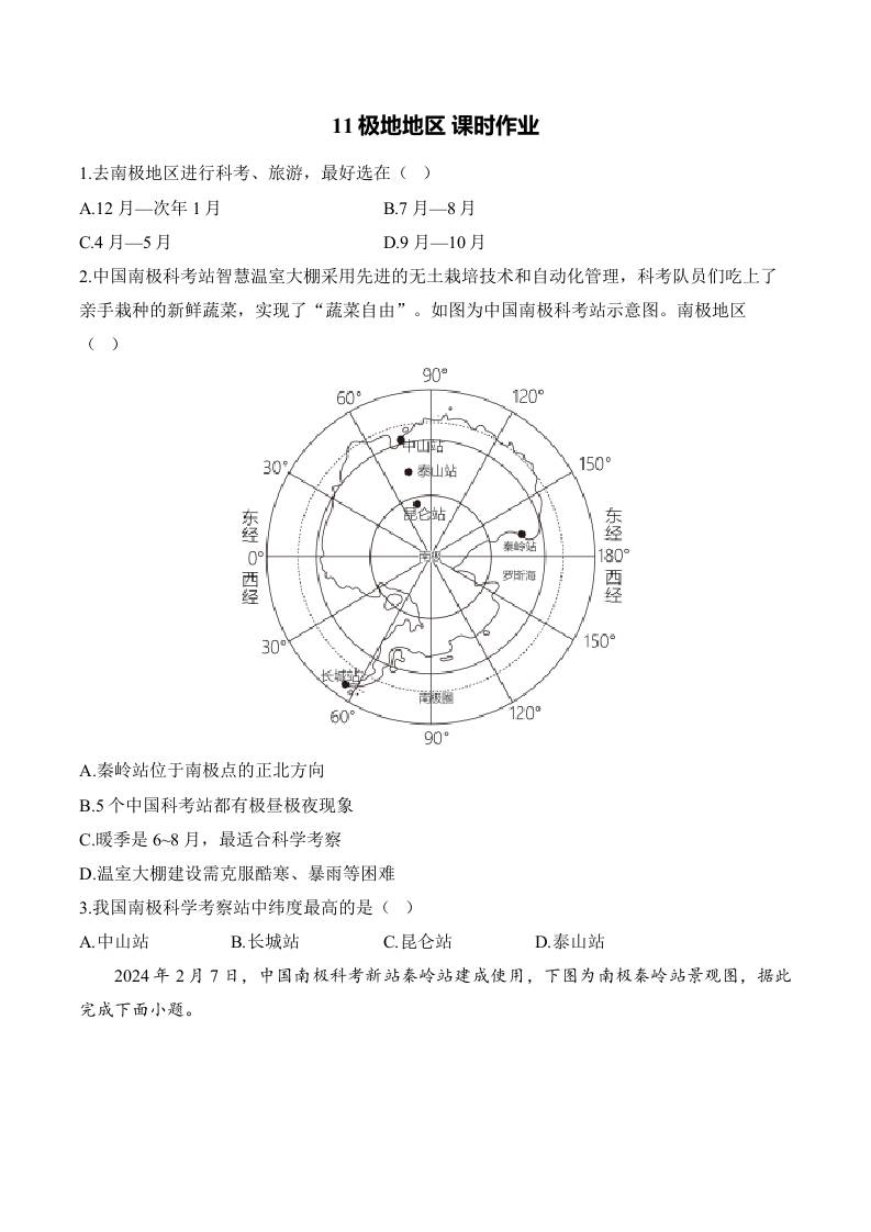 11.极地地区 课时作业(含解析)七年级地理人教版(2024)下册