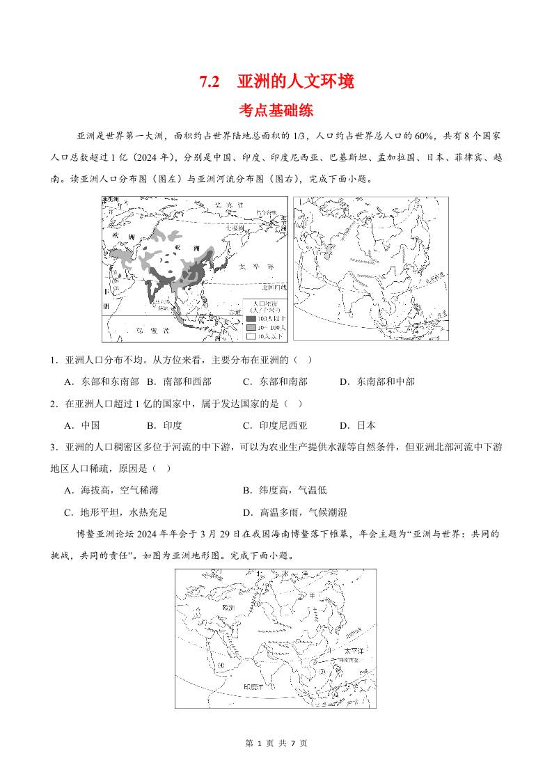 7.2人文环境(分层作业)(原卷版)