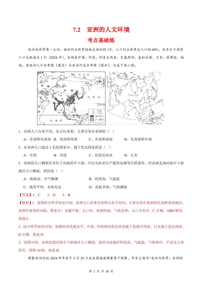 7.2人文环境(分层作业)(解析版)