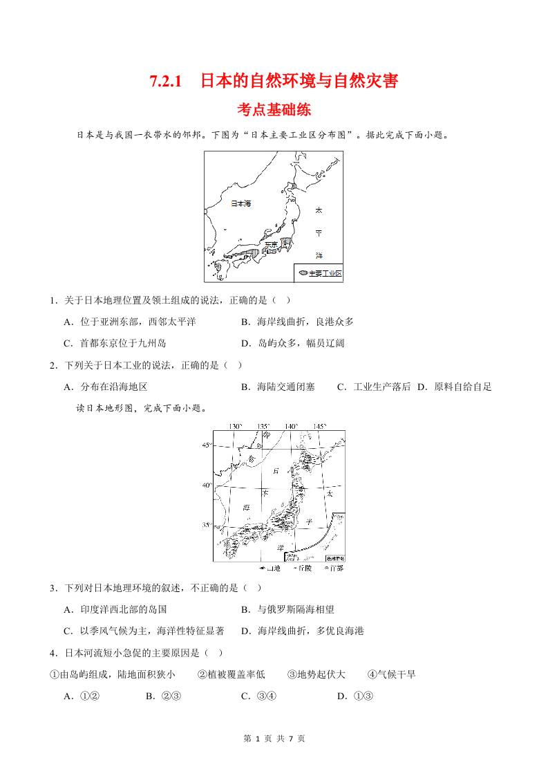 8.1.1日本第一课时(分层作业)(原卷版)