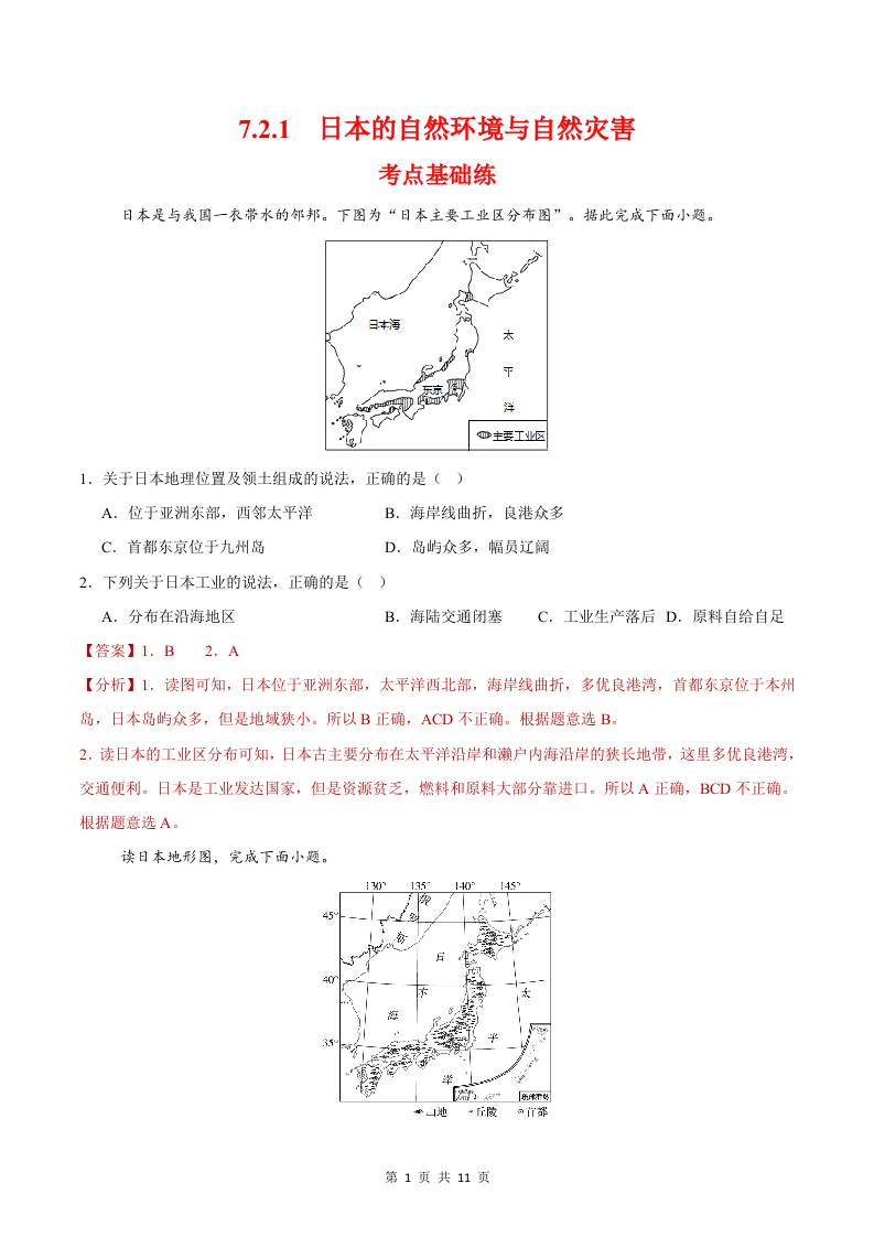 8.1.1日本第一课时(分层作业)(解析版)