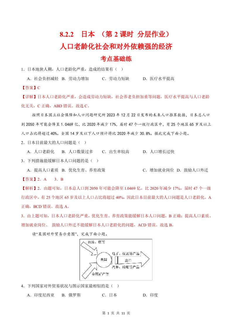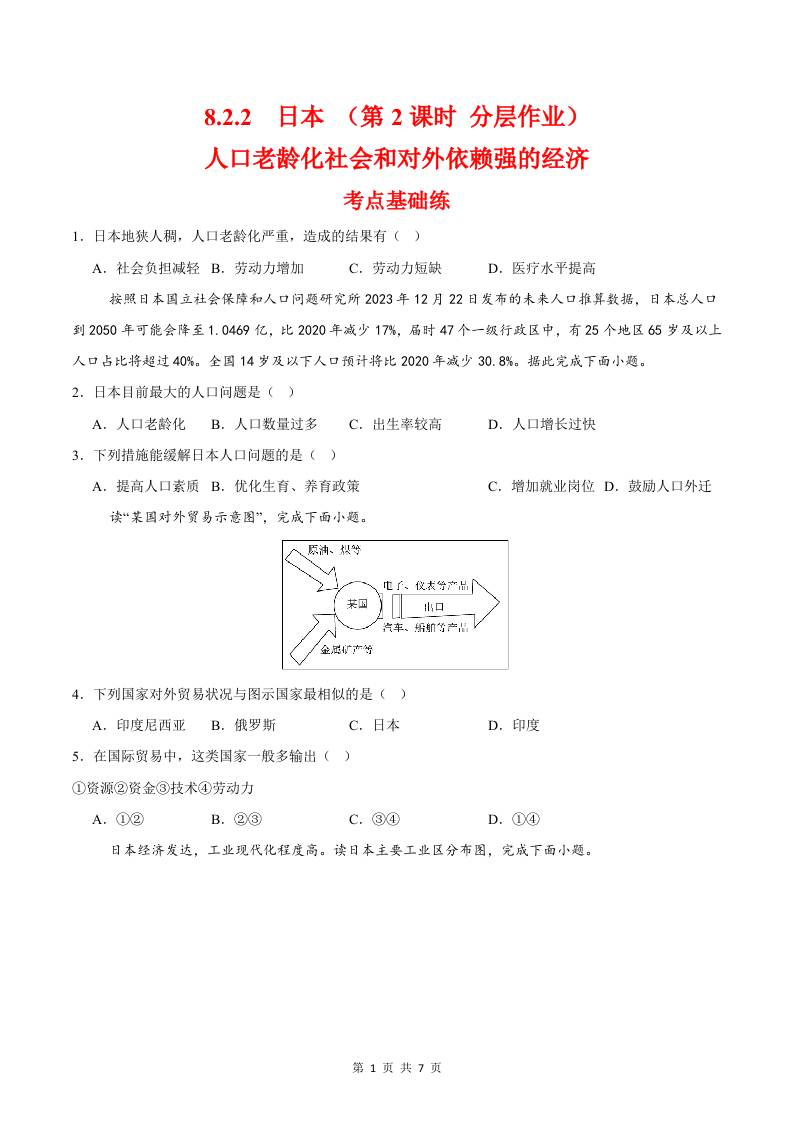 8.1.2日本第二课时(分层作业)(原卷版)
