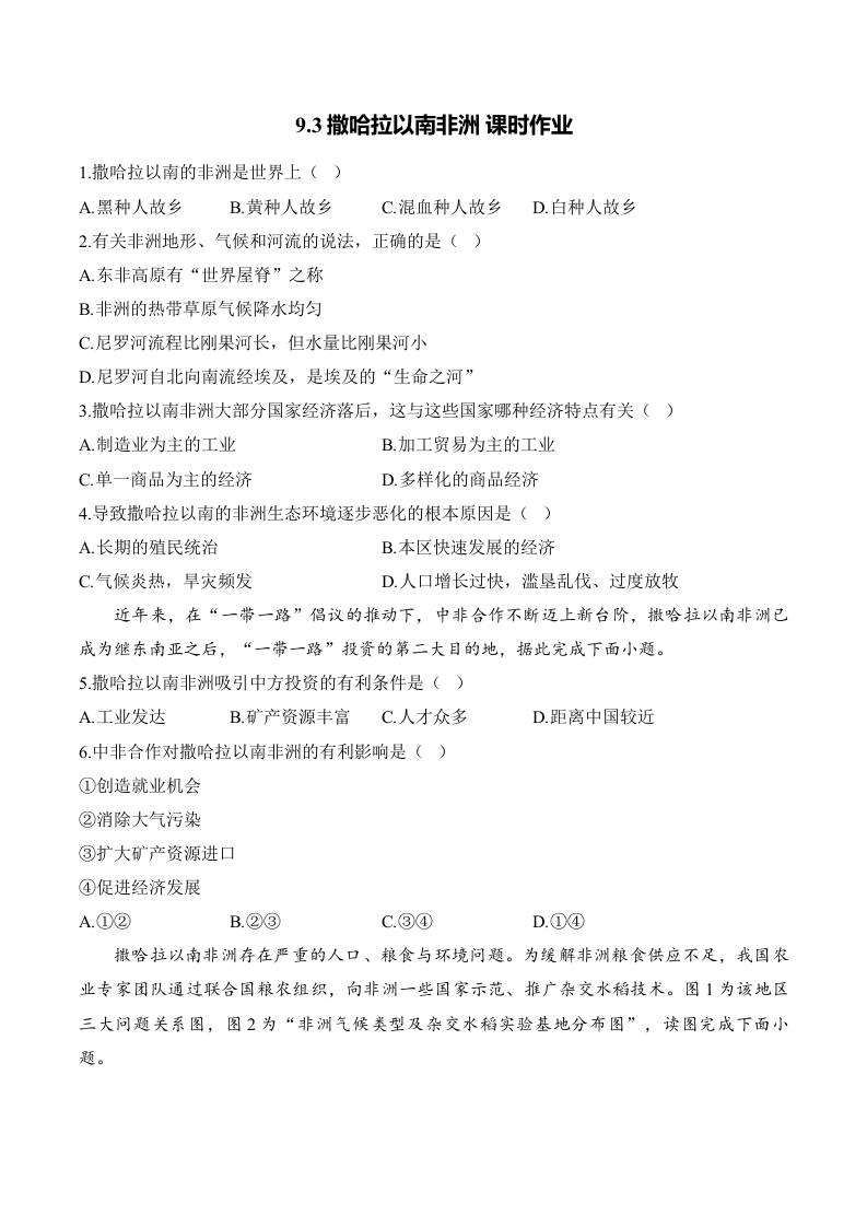 9.3撒哈拉以南非洲 课时作业(含解析)七年级地理人教版(2024)下册