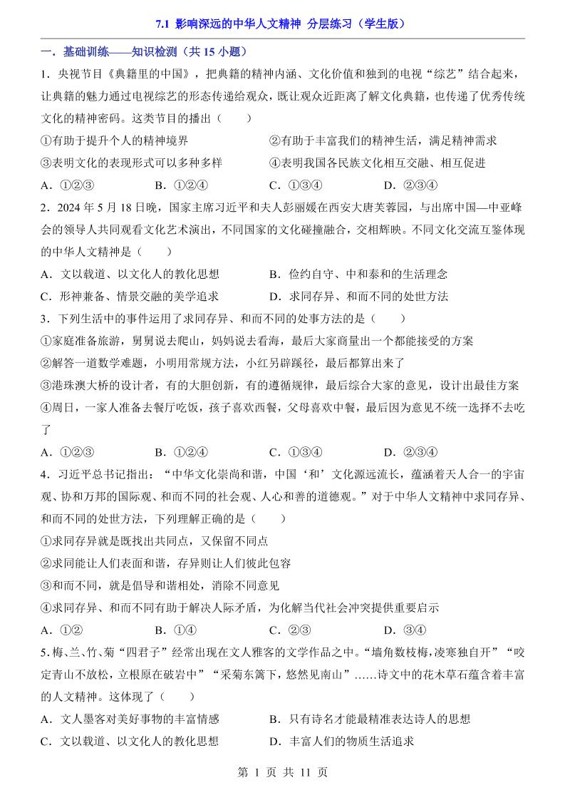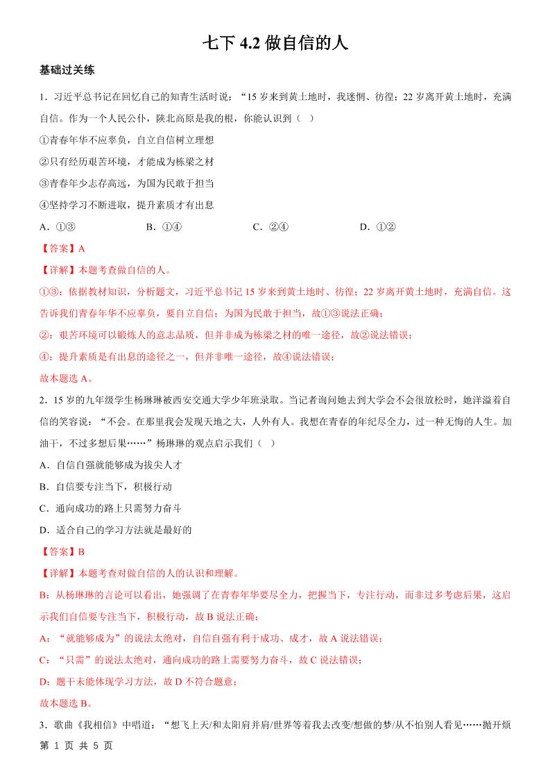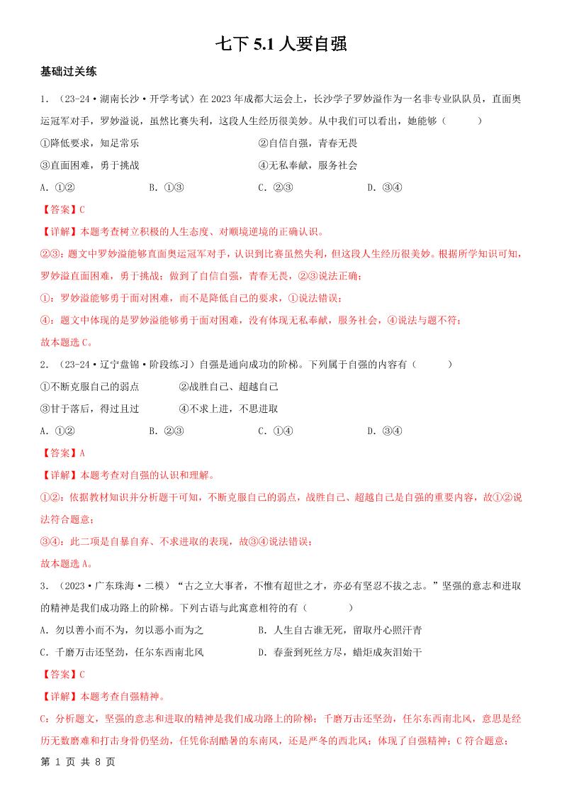 5.2做自强不息的中国人 (分层作业)(解析版)