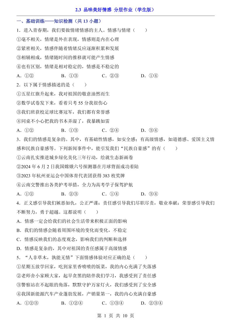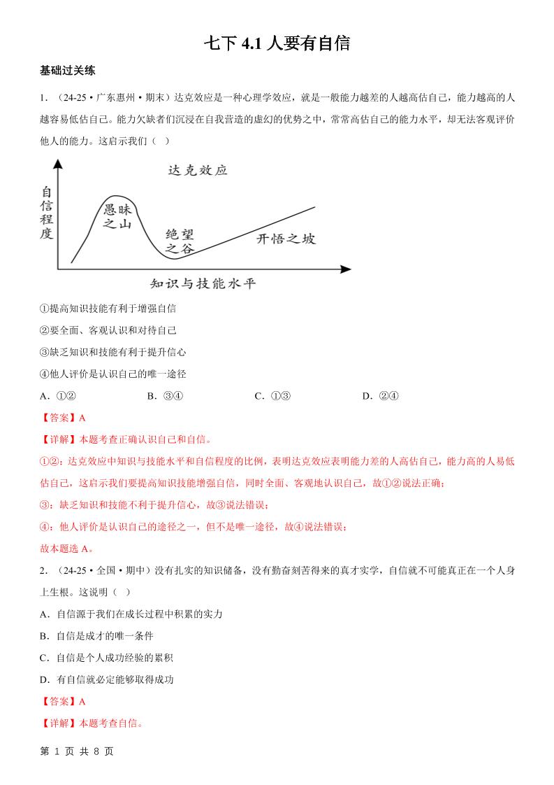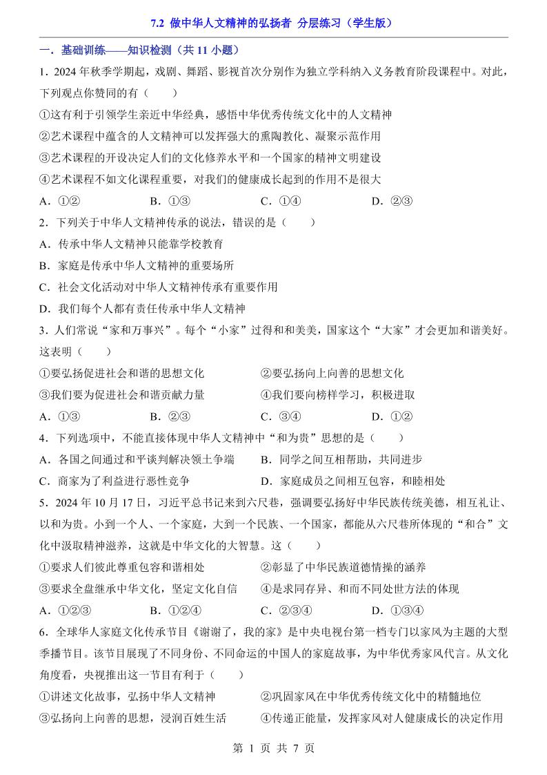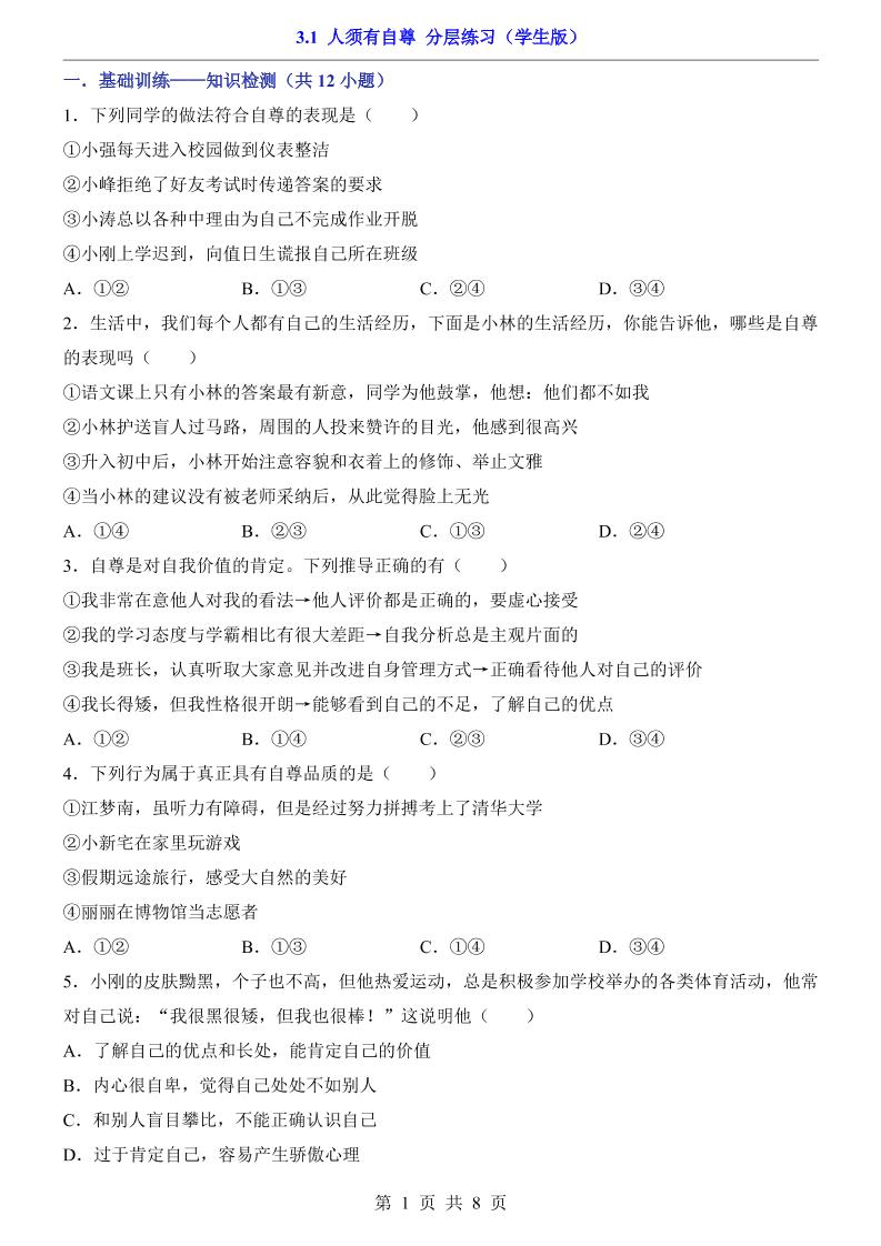 5.2做自强不息的中国人 (分层作业)(解析版)