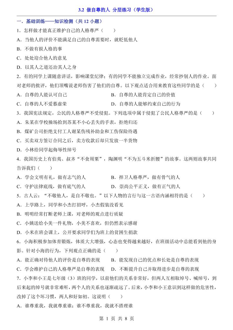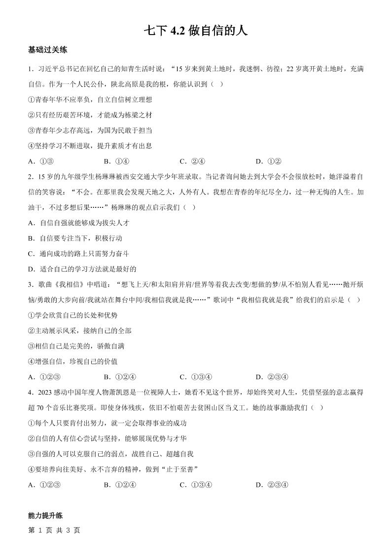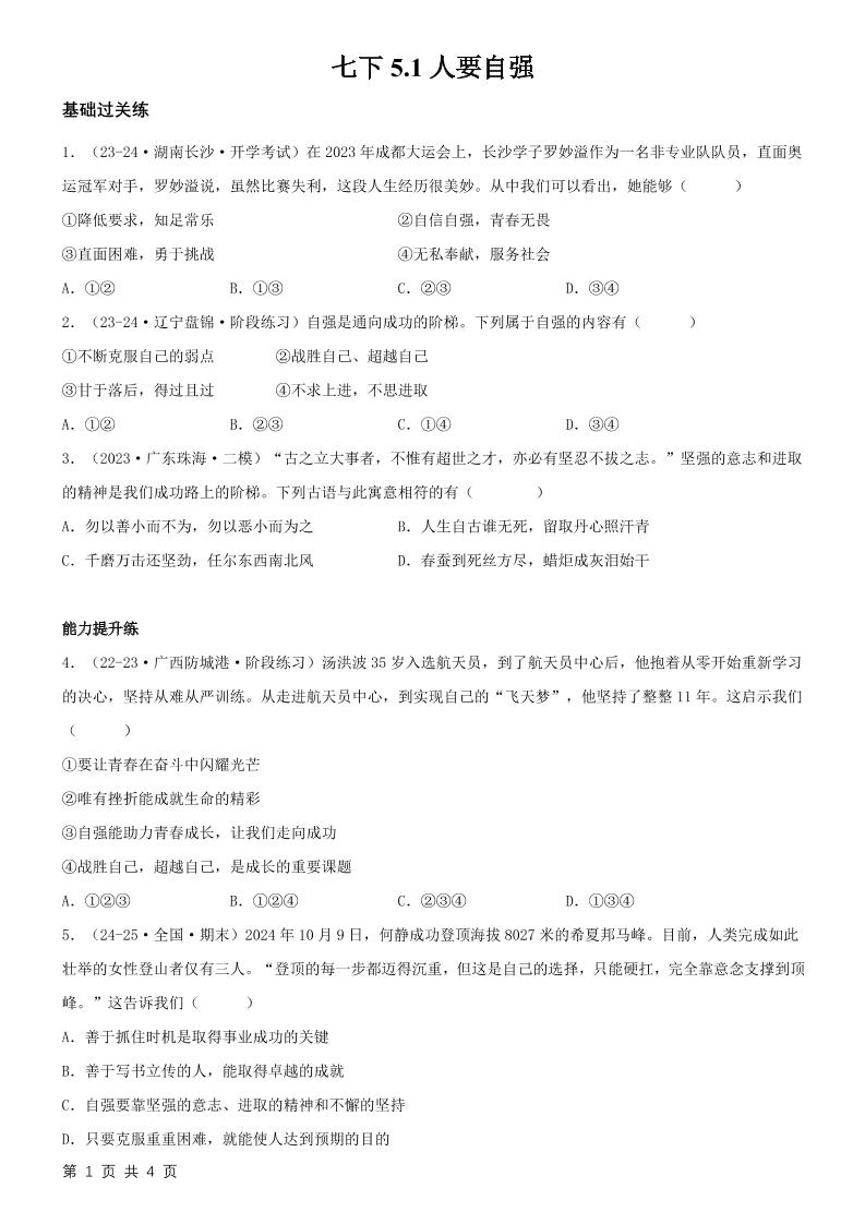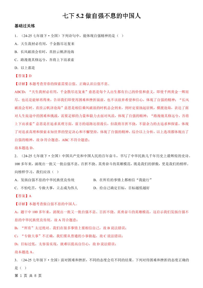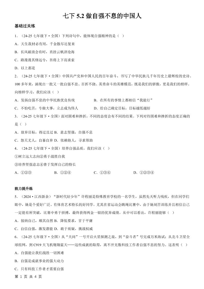5.2做自强不息的中国人 (分层作业)(原卷版)
