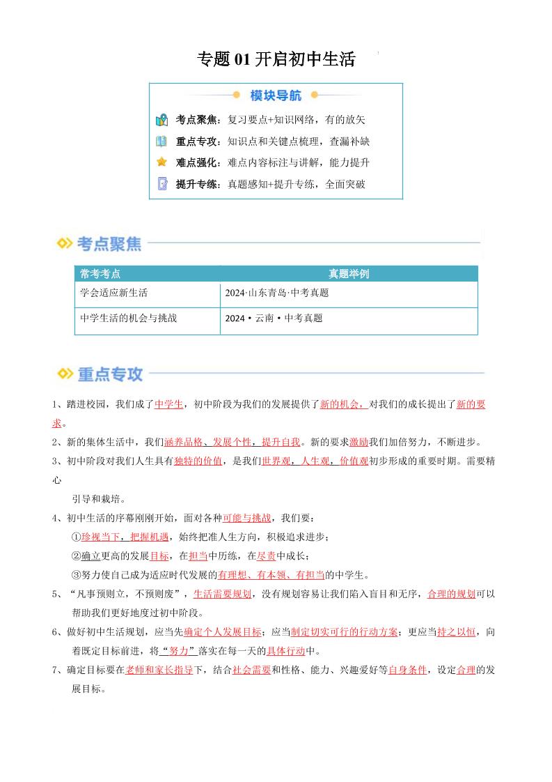 第一单元 珍惜青春时光【A卷·提升卷】(学生版)