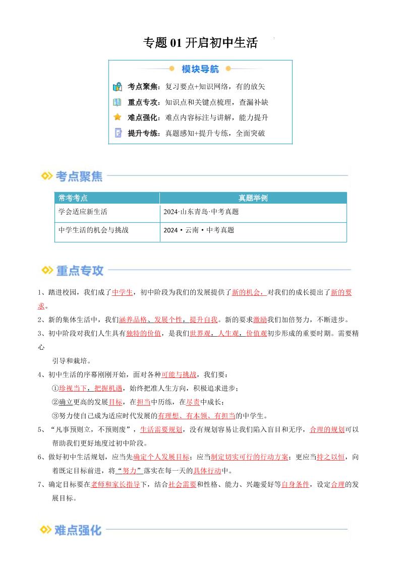 第一单元 珍惜青春时光【B卷·培优卷】(学生版)