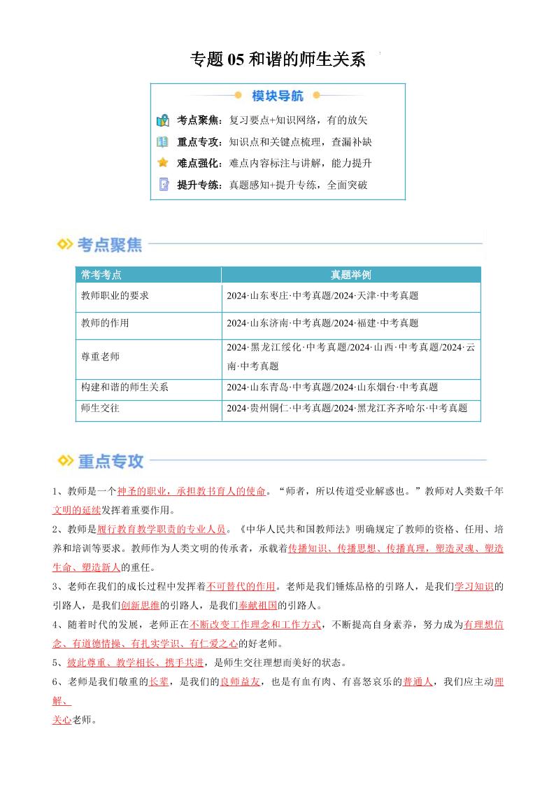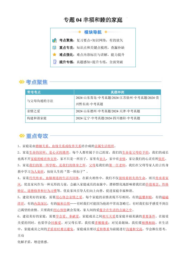 专题04 幸福和睦的家庭(复习)(原卷版)