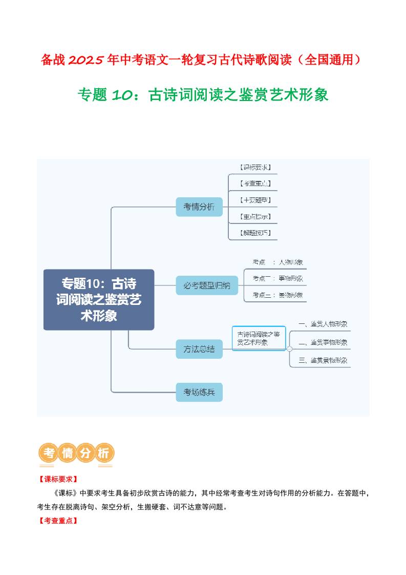 专题10:古诗词阅读之鉴赏艺术形象-备战2025年中考语文一轮复习古代诗歌阅读(全国通用)原卷版
