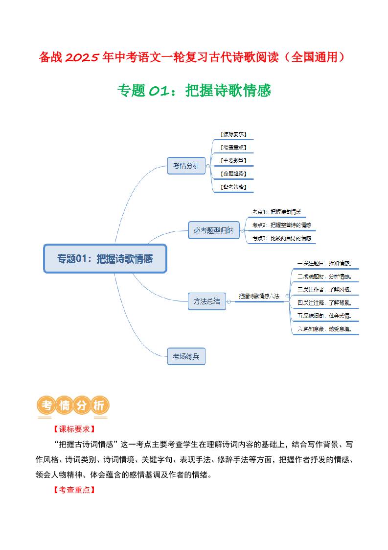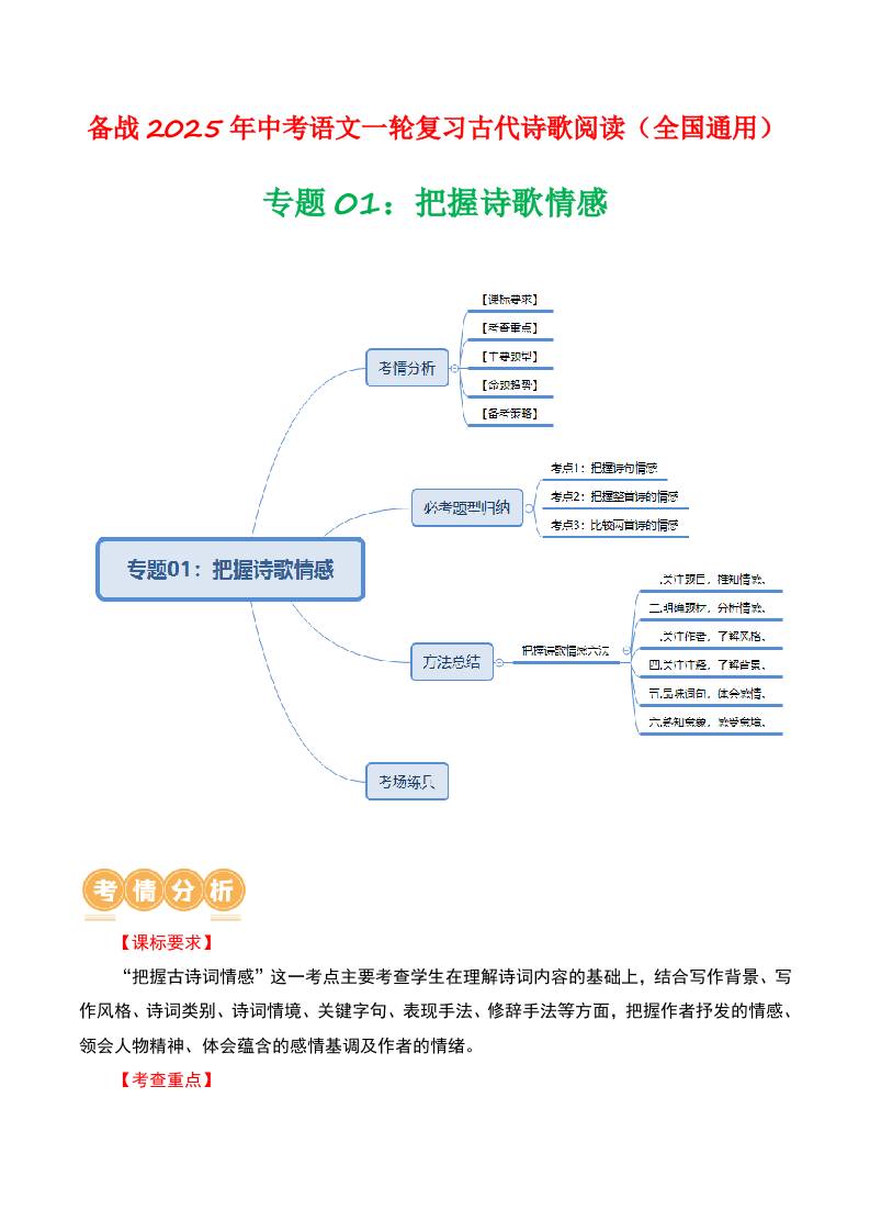 专题01:把握诗歌情感-备战2025年中考语文一轮复习古代诗歌阅读(全国通用)原卷版