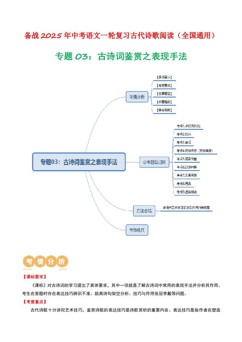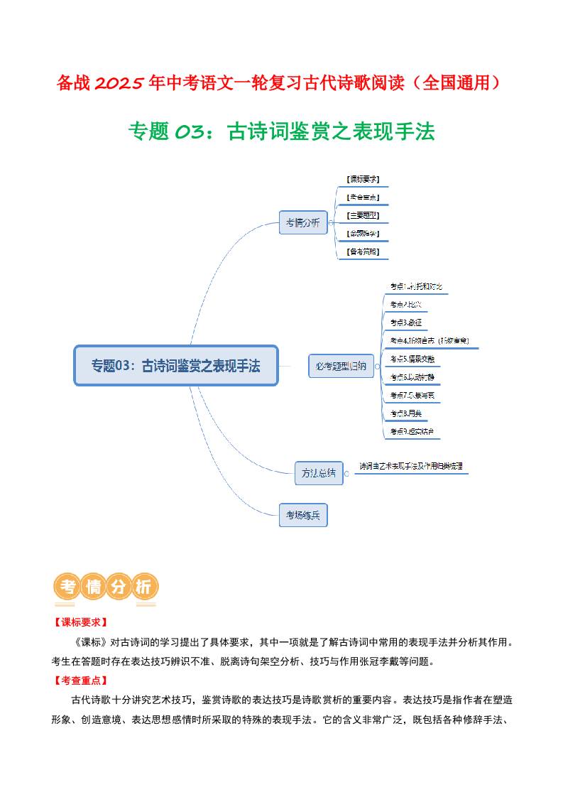 专题03:古诗词鉴赏之表现手法-备战2025年中考语文一轮复习古代诗歌阅读(全国通用)原卷版
