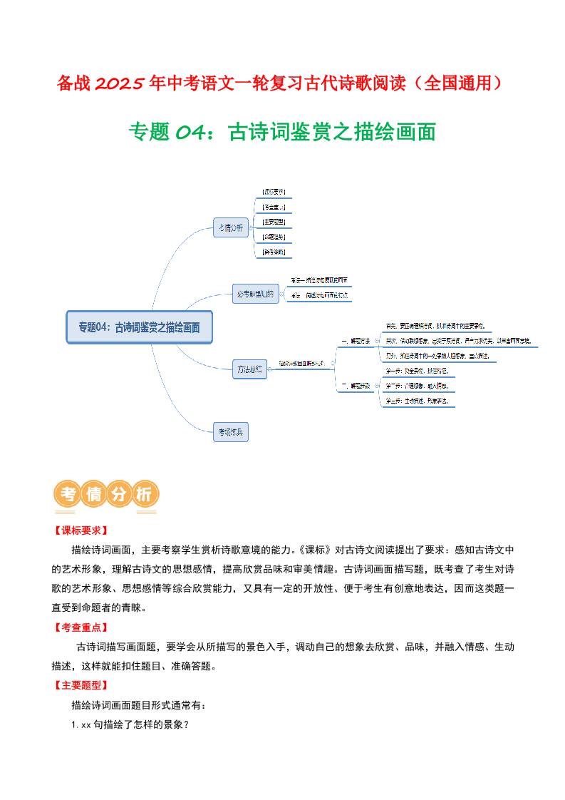 专题04:古诗词鉴赏之描绘画面-备战2025年中考语文一轮复习古代诗歌阅读(全国通用)原卷版