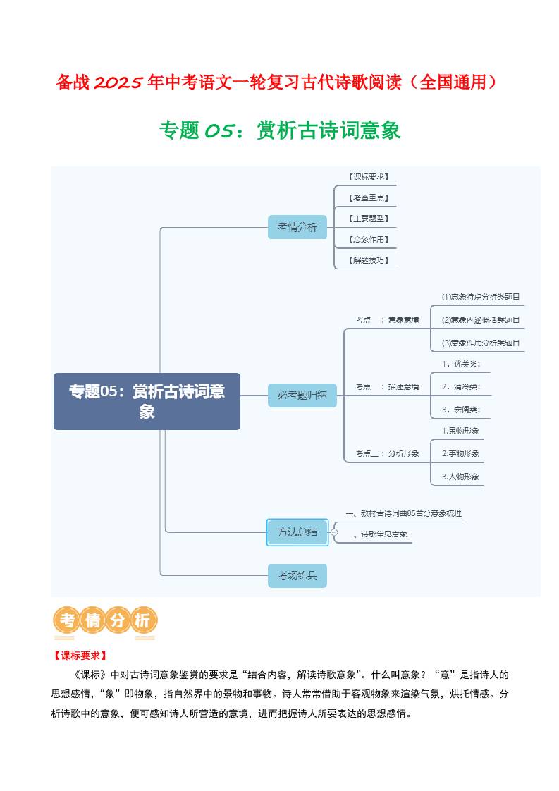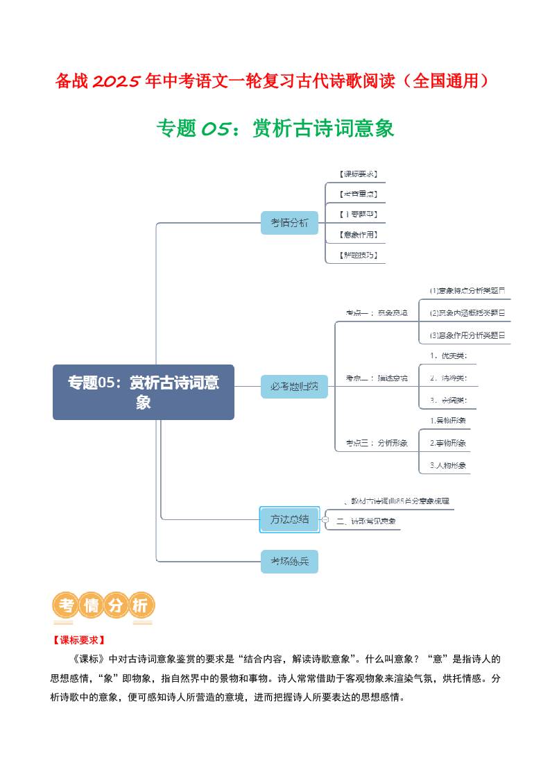 专题05:赏析古诗词意象-备战2025年中考语文一轮复习古代诗歌阅读(全国通用)原卷版