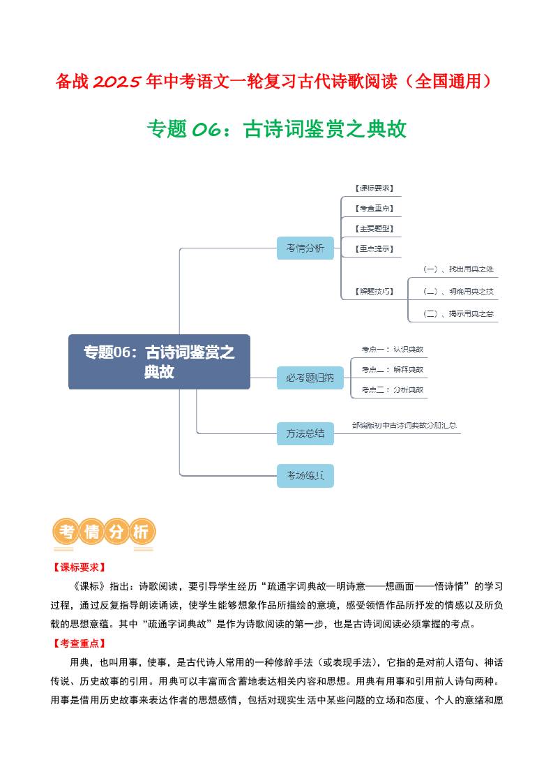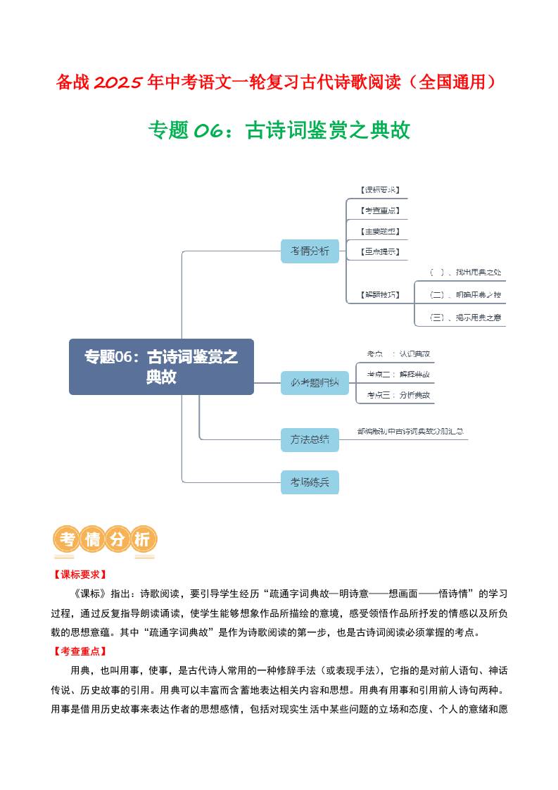 专题06:古诗词鉴赏之典故-备战2025年中考语文一轮复习古代诗歌阅读(全国通用)原卷版