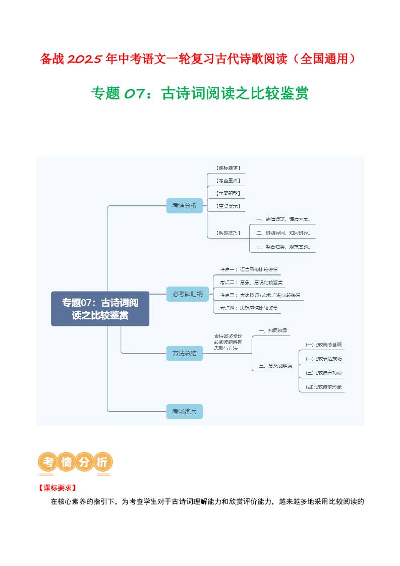 专题07:古诗词阅读之比较鉴赏-备战2025年中考语文一轮复习古代诗歌阅读(全国通用)原卷版
