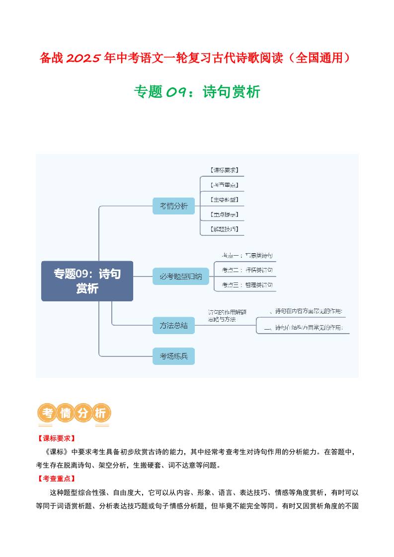 专题09:古诗词鉴赏之诗句赏析-备战2025年中考语文一轮复习古代诗歌阅读(全国通用)原卷版
