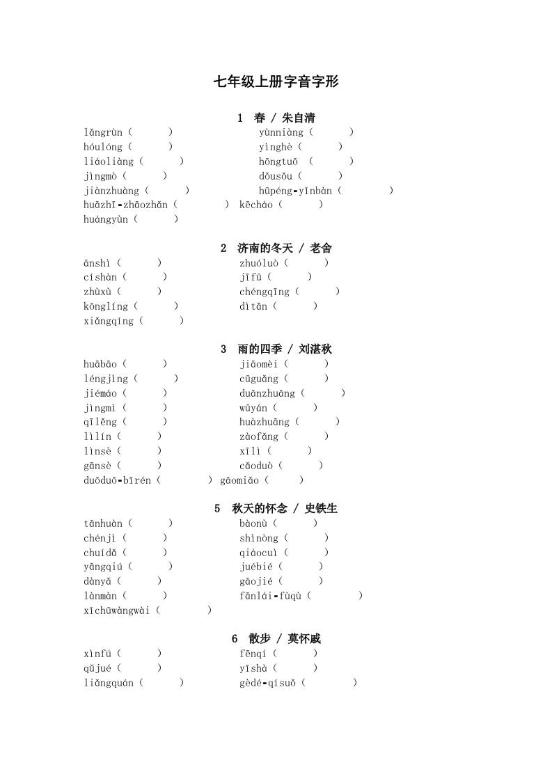 2025年中考语文一轮复习考点突破练习:七年级上册字音字形(含答案)
