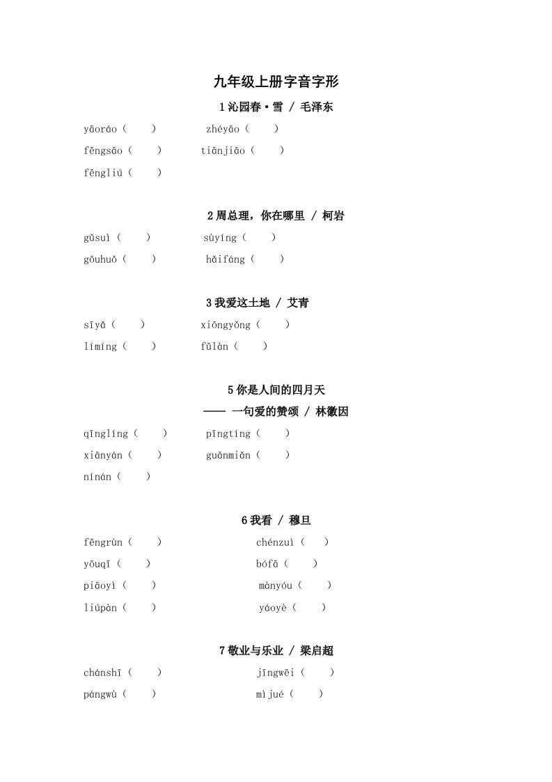 2025年中考语文一轮复习考点突破练习:九年级上册字音字形(含答案)