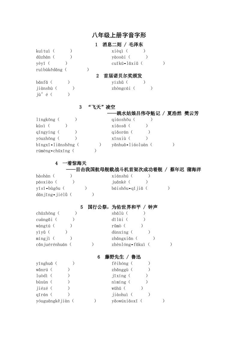 2025年中考语文一轮复习考点突破练习:八年级上册字音字形(含答案)