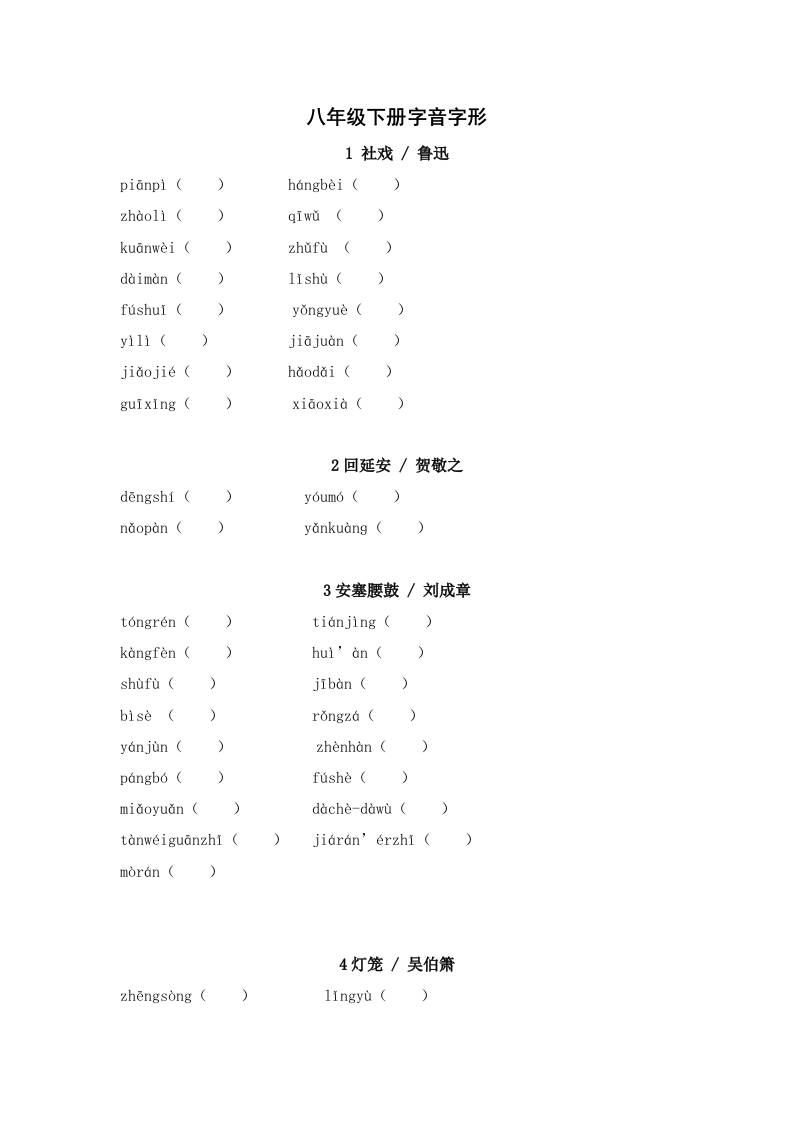 2025年中考语文一轮复习考点突破练习:八年级下册字音字形(含答案)