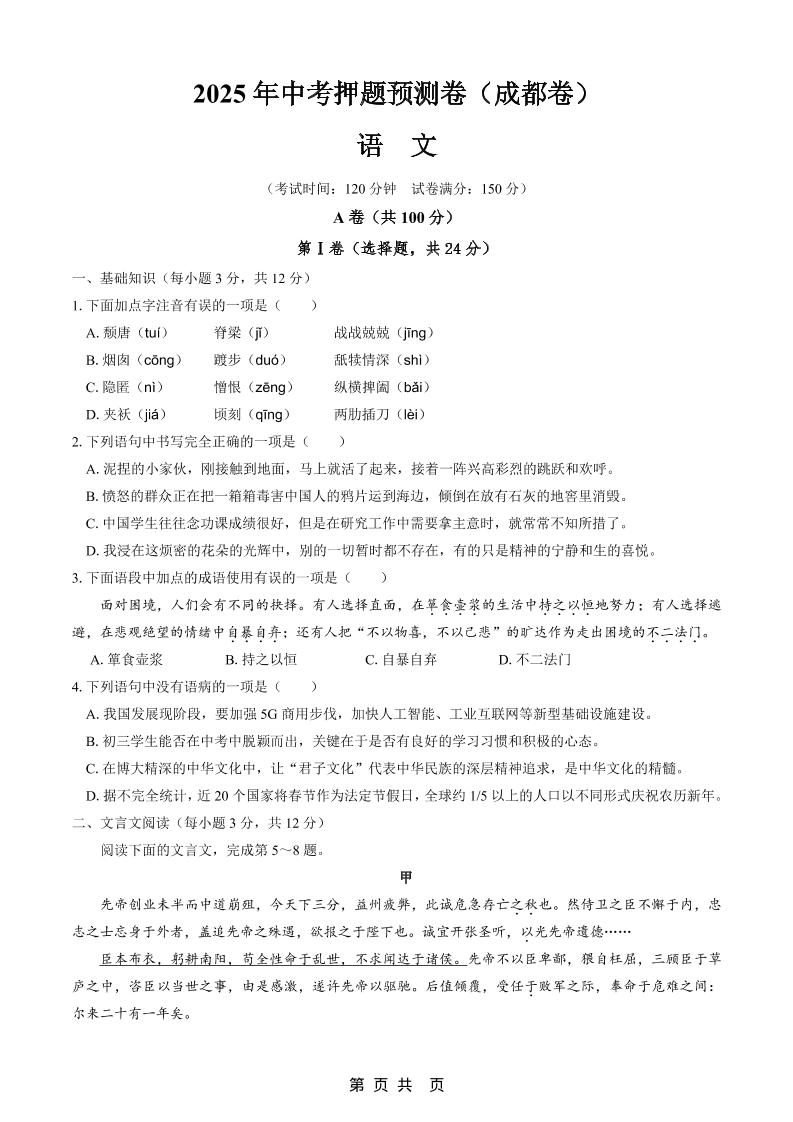 语文(成都卷)