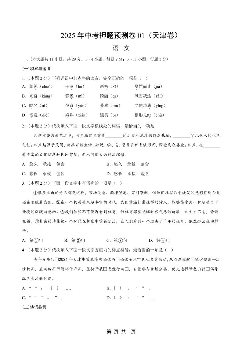 语文(天津卷01)