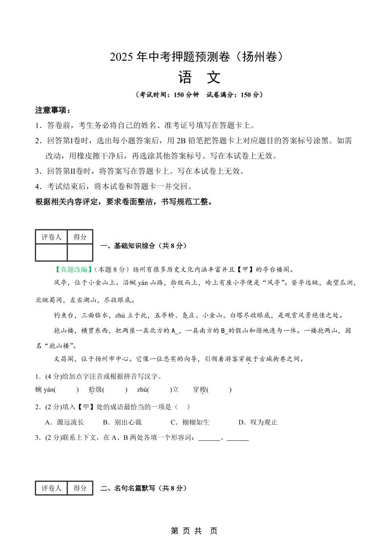 语文(扬州卷)